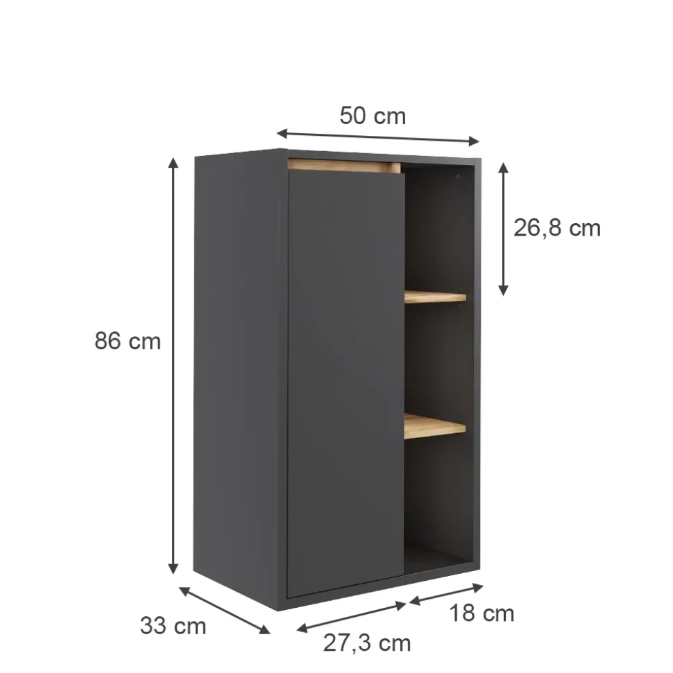 - MAßE: Das Badezimmermöbel misst 50 cm in der Breite, 33 cm in der Tiefe und 86 cm in der Höhe.