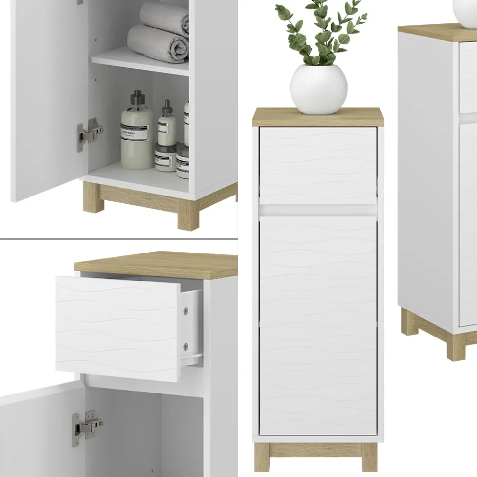 Träumen Sie von einem perfekt organisierten Badezimmer, in dem Sie all Ihre Pflegeprodukte ordentlich verstauen können? Mit dem Midischrank Livia wird Ihr Traum wahr! Dieser stilvolle Badschrank bietet nicht nur ausreichend Stauraum mit 2 regalen und 1 Schublade, sondern überzeugt auch mit seinem zeitlosen Design, das zu jedem Einrichtungsstil passt. Die hochwertige Verarbeitung aus Holz garantiert zudem eine lange Lebensdauer. Egal ob Sie allein oder mit Ihrer Familie leben, dieser Badezimmerschrank wird Ihnen helfen, Ihr Badezimmer aufgeräumt zu halten. Gönnen Sie sich dieses praktische Möbelstück und erleichtern Sie sich den Alltag!
