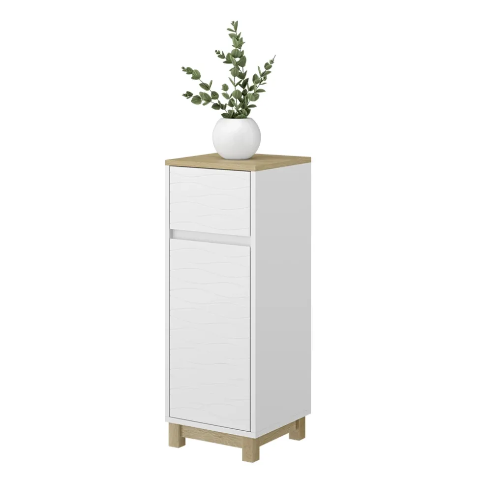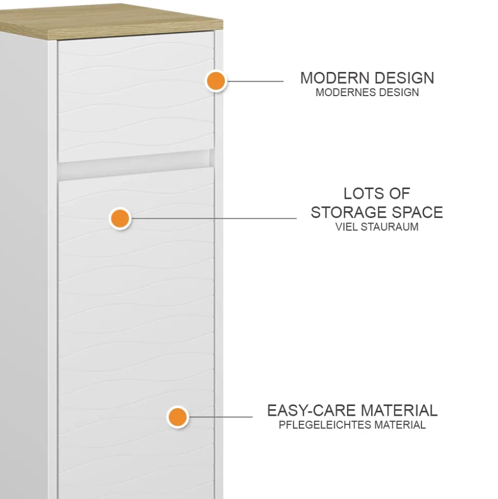 Der Toilettenschrank Livia kombiniert stilvolles Design mit praktischer Funktionalität. Mit seinen großzügigen Stauraummöglichkeiten und der natürlichen Farbgebung bringt er Ordnung und Wärme in jedes Badezimmer.