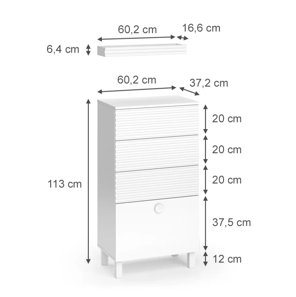 Midischrank: 60,2 x 113 x 37,2 cm (BxHxT)