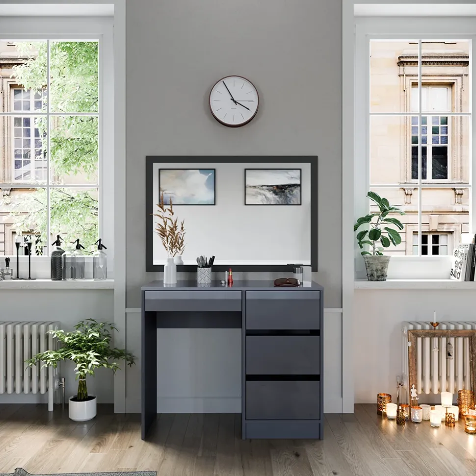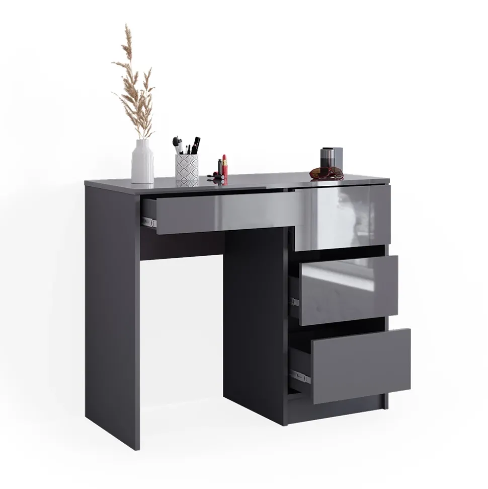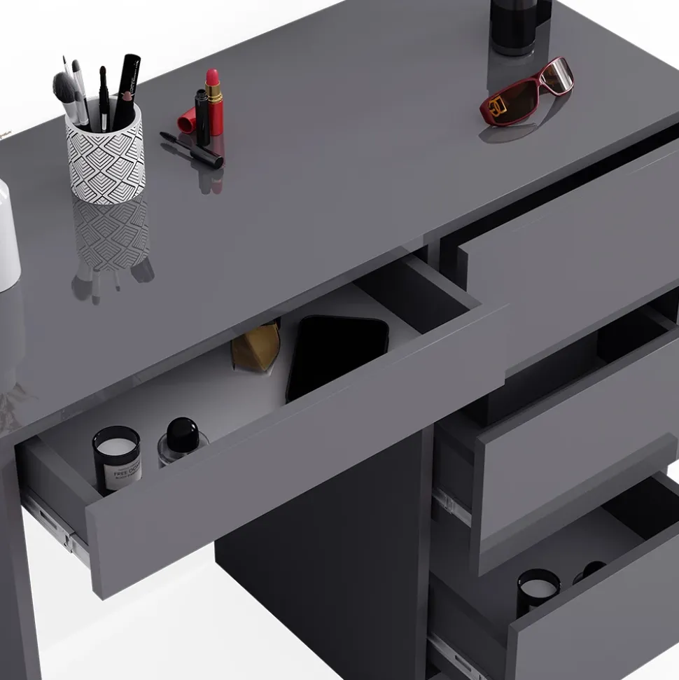 - Lernen Sie den Vicco Schminktisch Sherry im stilvollen Anthrazit Hochglanz kennen! Dieser moderne Schminktisch mit Schubladen ist ideal für Ihr Schlafzimmer und Ihr tägliches Make-up – Styling.