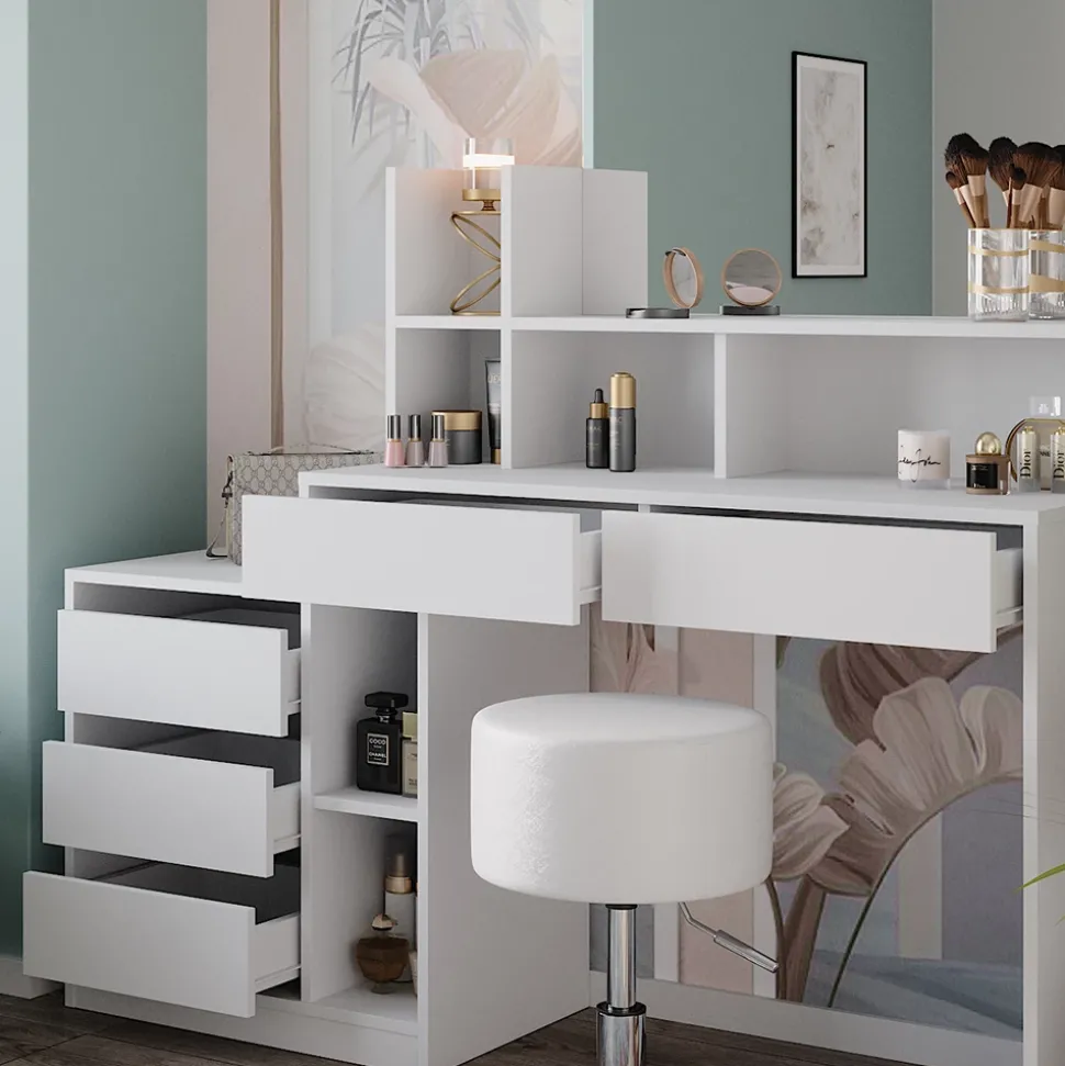 - MATERIAL: Der Schminktisch besteht aus pflegeleichter Spanplatte, 16 mm, Melaminharzbeschichtung.