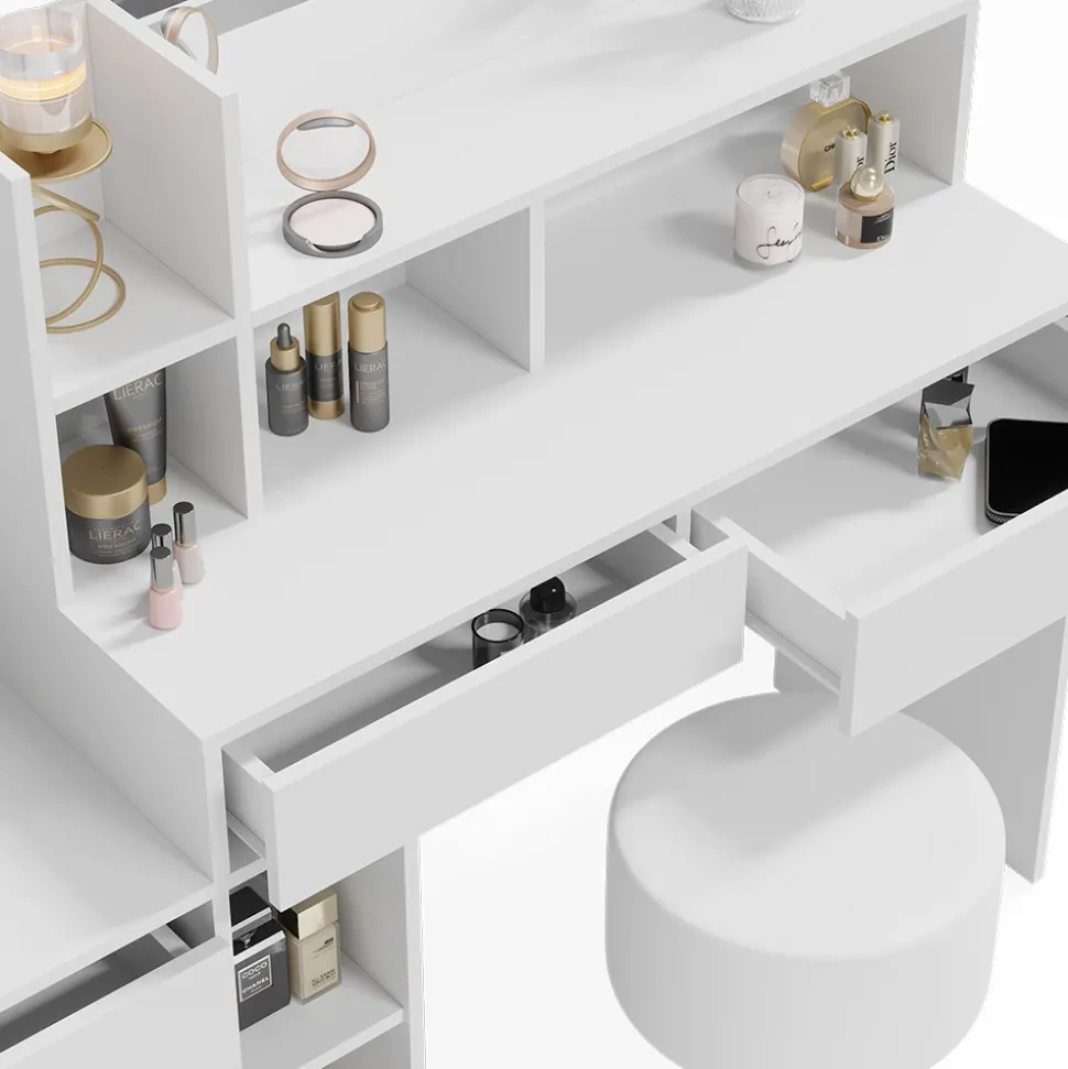 - Der Kosmetiktisch mit Spiegel verfügt über praktische Aufbewahrungsmöglichkeiten für Ihre Schönheitsutensilien und bietet eine optimale Beleuchtung für Ihr Make-up.