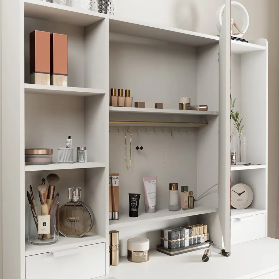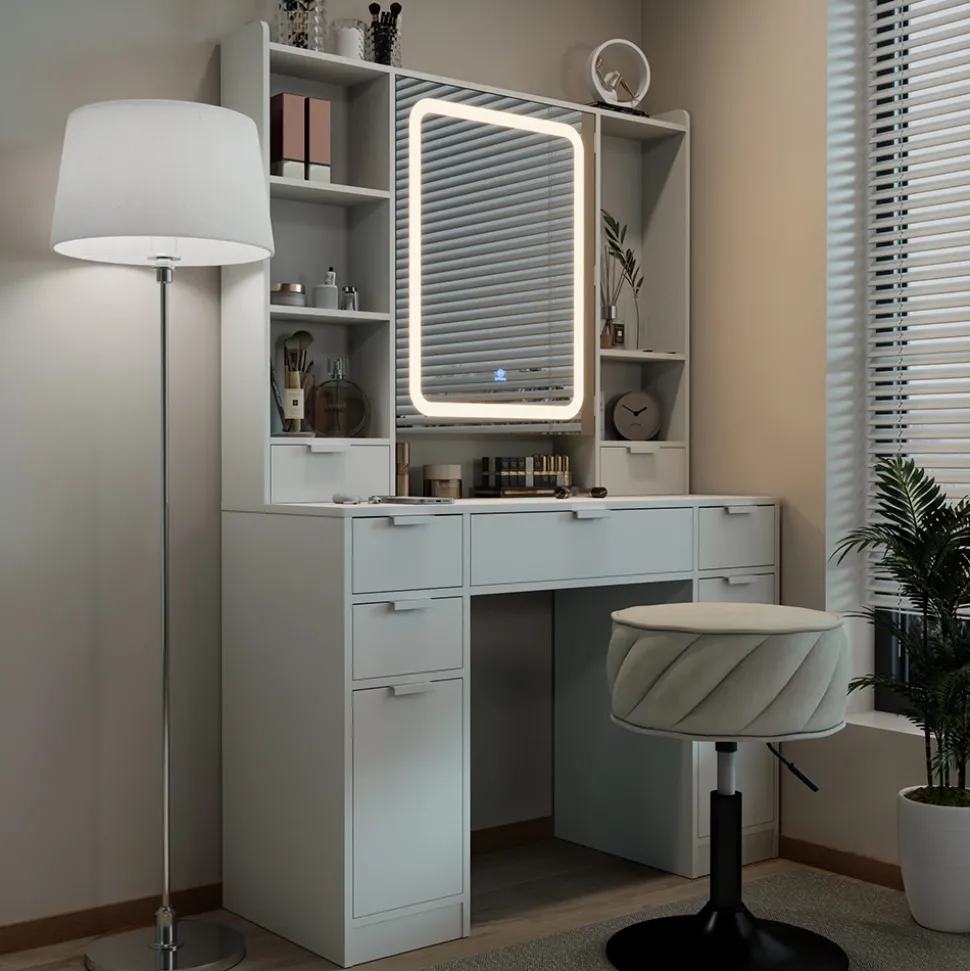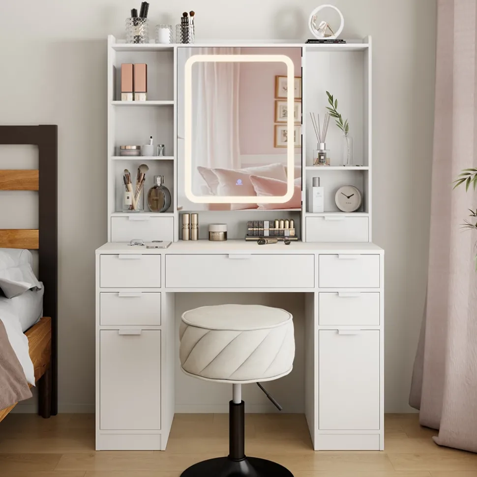 - Der Kosmetiktisch mit Spiegel bietet ausreichend Stauraum und integrierte Beleuchtung für optimale Sicht beim Schminken. Ein echtes Highlight für das tägliche Make-up-Ritual!