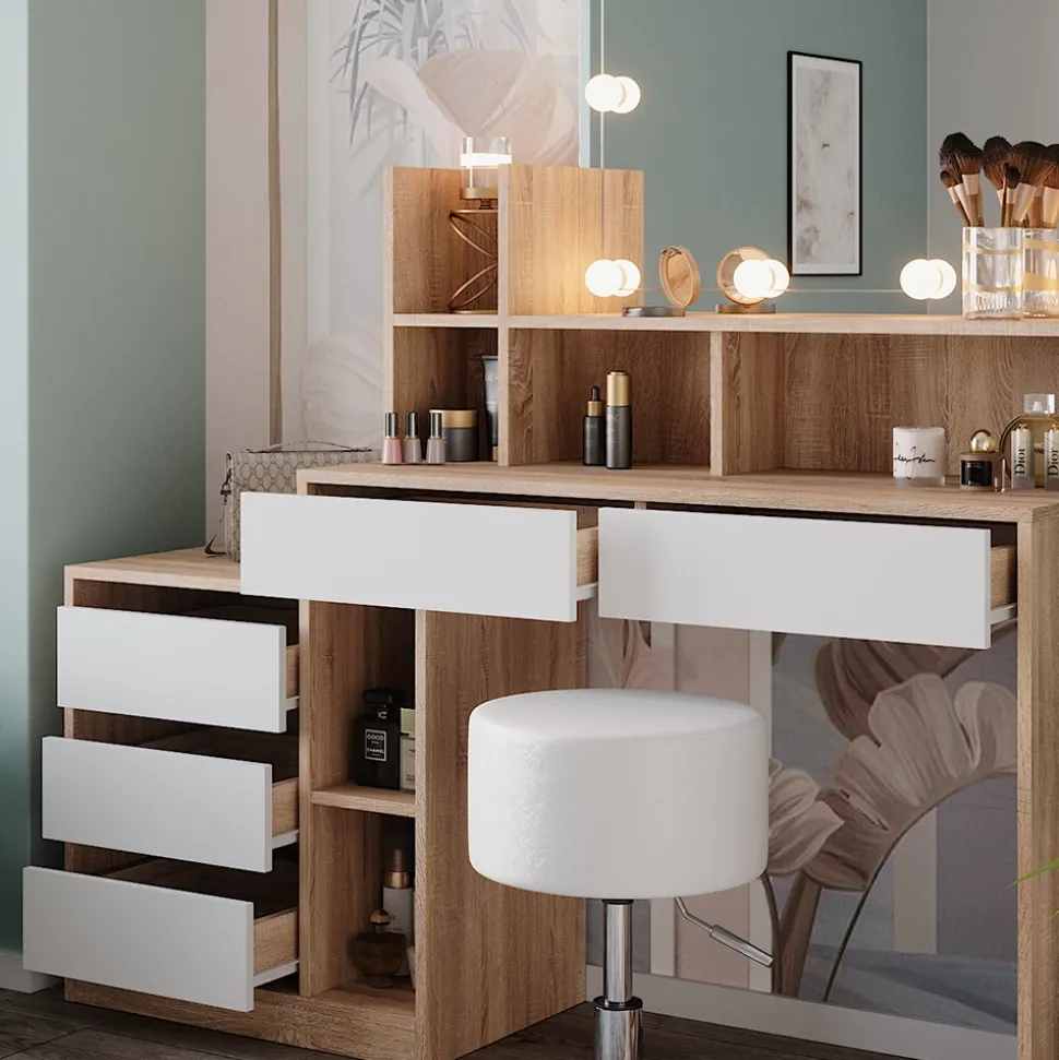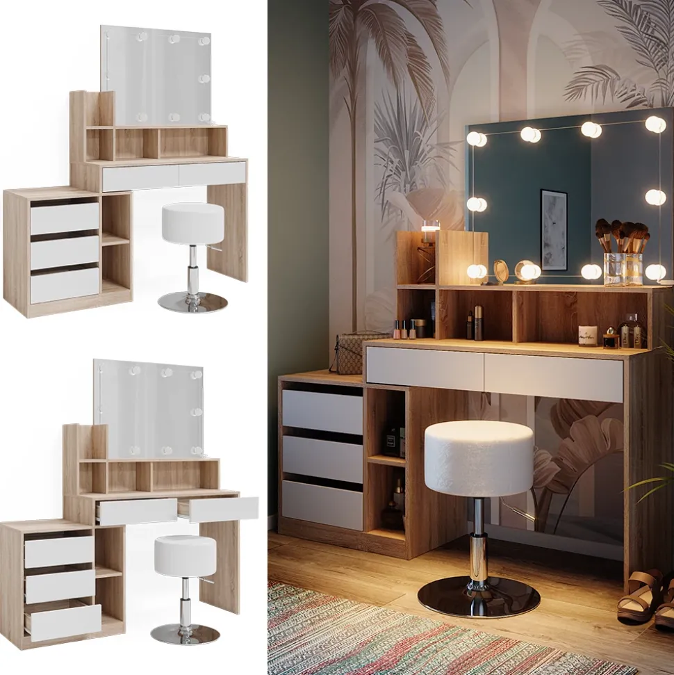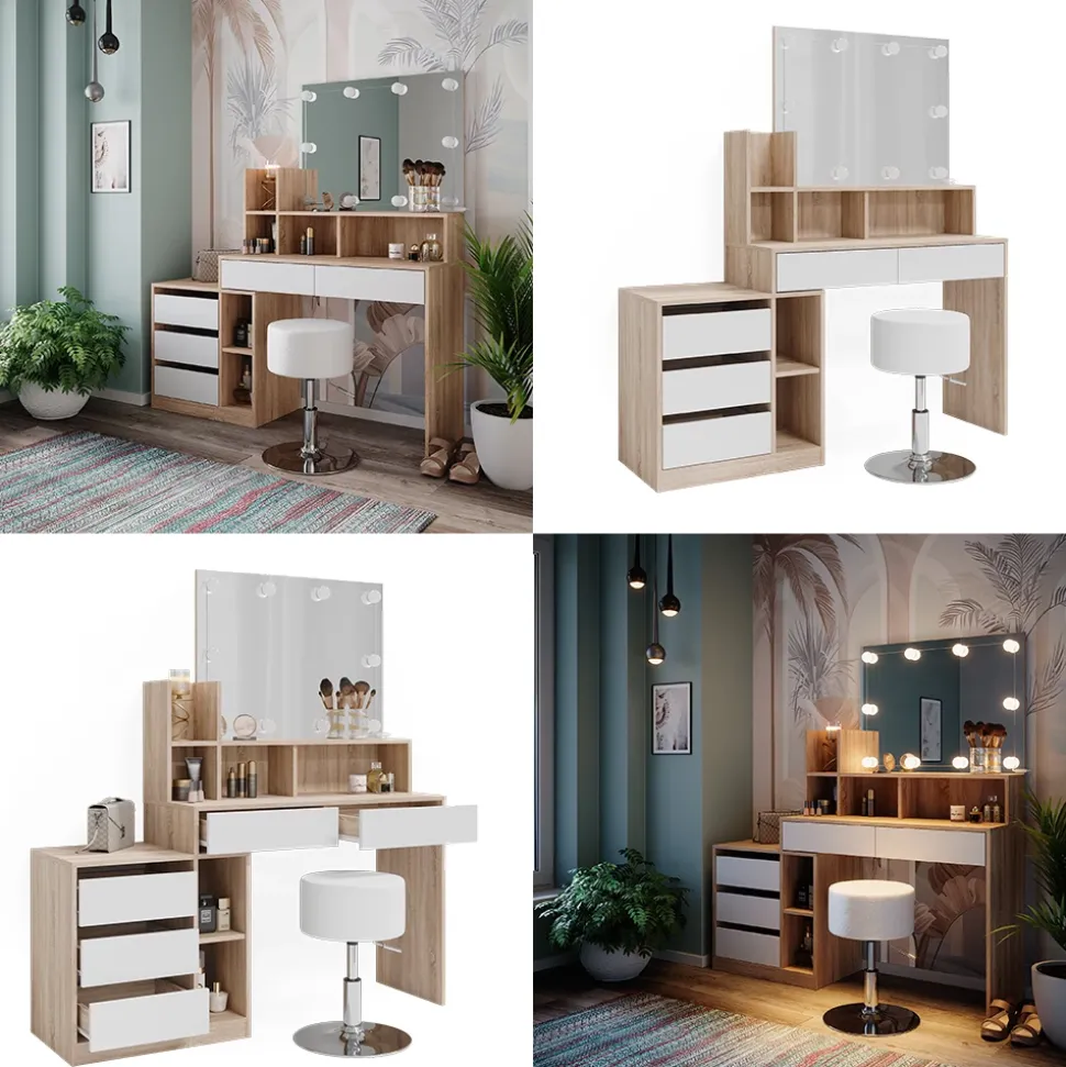 - Der Kosmetiktisch mit Spiegel bietet praktische Aufbewahrungsmöglichkeiten und eine integrierte Beleuchtung für ein perfektes Make-up-Ergebnis.