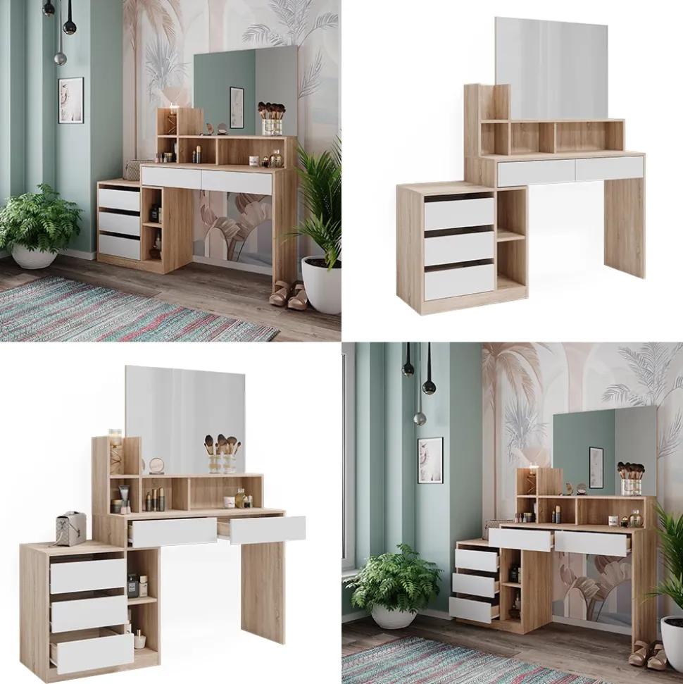 Der Schminktisch Anja ist der perfekte Begleiter für jeden Morgenritual. Mit seinem eleganten Design und dem großzügigen Spiegel lädt er dazu ein, sich selbst zu verwöhnen und das eigene Äußere zu pflegen. Die Frisierkommode bietet genug Platz für all Ihre Beauty-Produkte und Accessoires, sodass Sie sich in Ruhe zurechtmachen können. Lassen Sie sich von Anja jeden Tag aufs Neue dabei unterstützen, Ihr bestes Selbst zu zeigen und sich rundum wohl zu fühlen. Gönnen Sie sich diesen Luxus und spüren Sie die tägliche Freude, die Anja Ihnen schenkt.