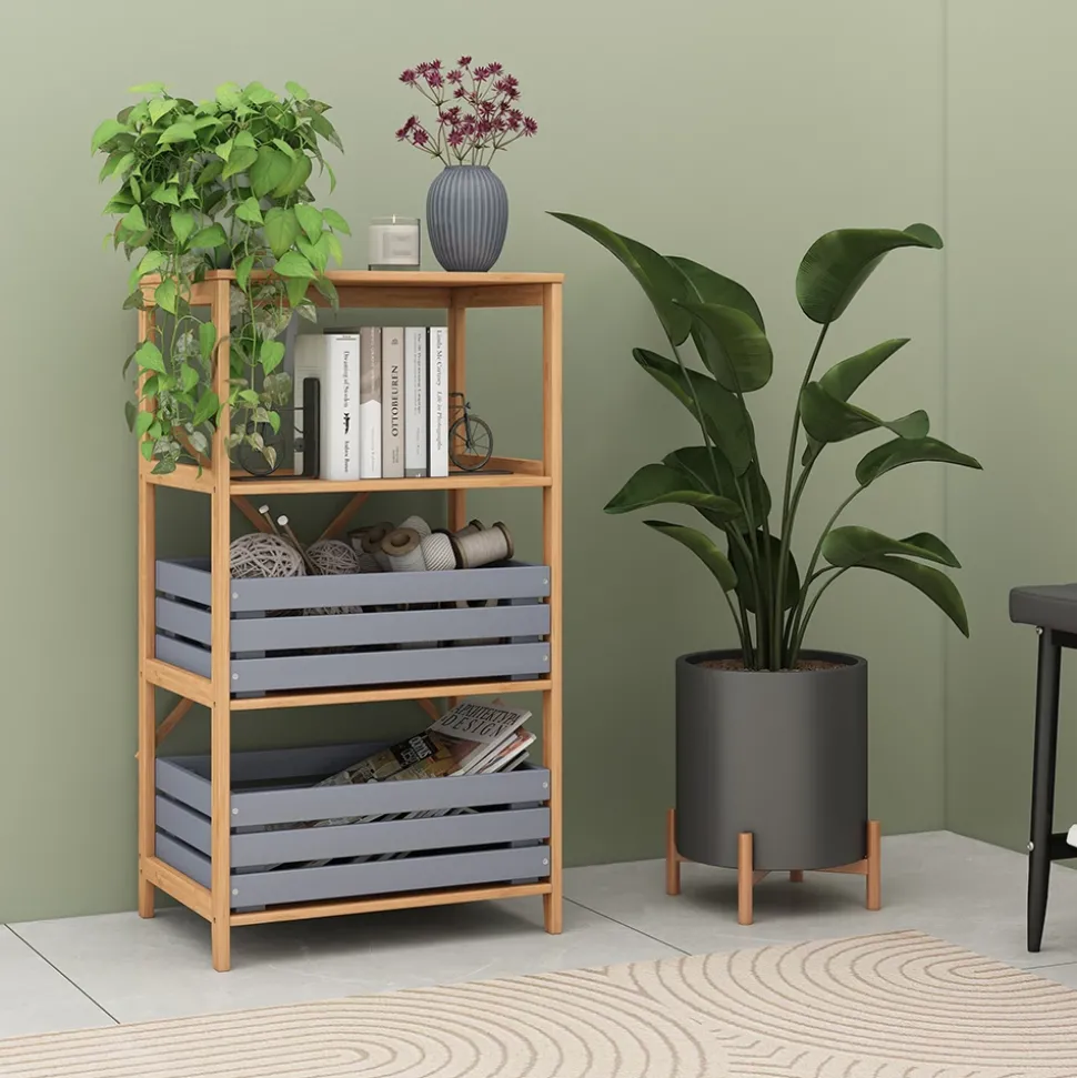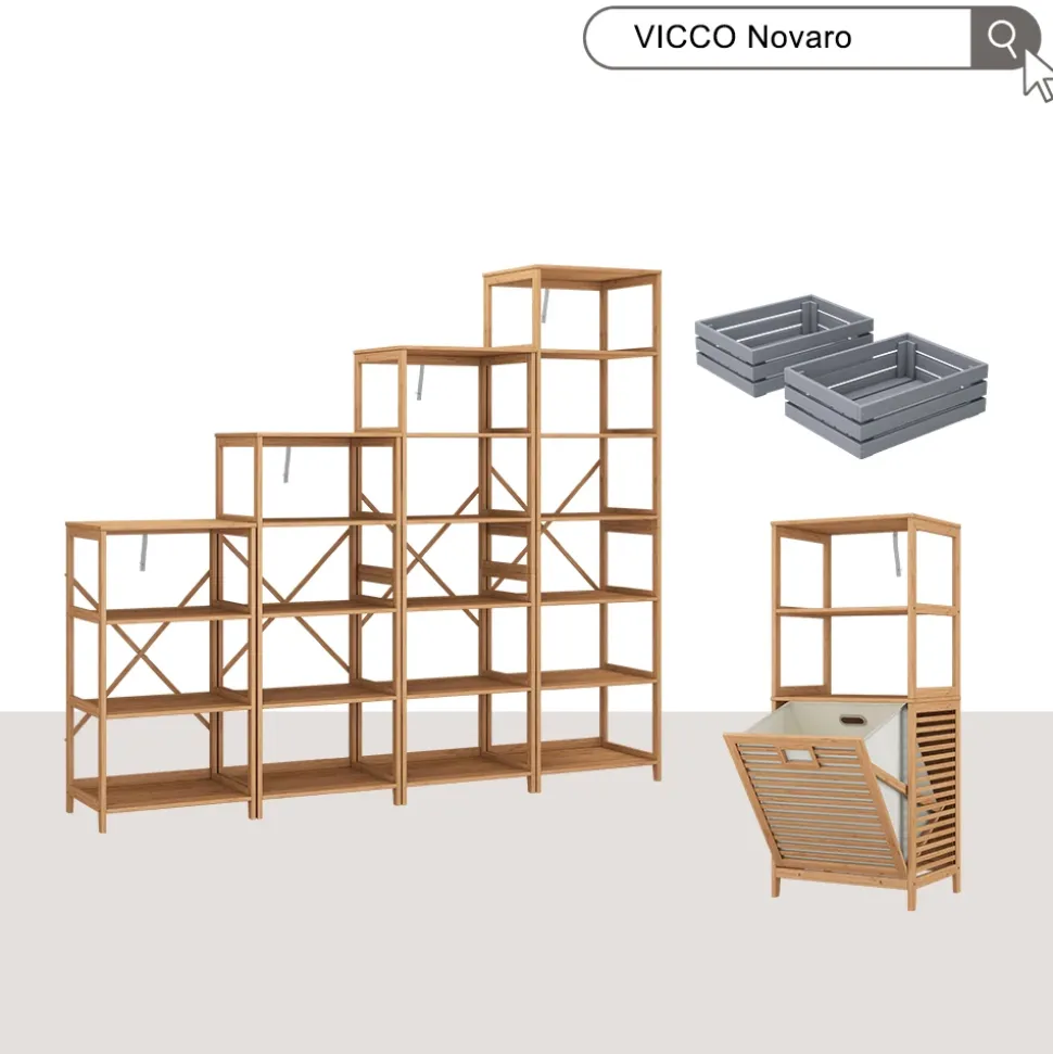 Das Regal Novaro aus Bambus besticht durch sein modernes Design und die natürliche, warme Ausstrahlung des Bambusmaterials. Mit vier geräumigen Regalfächern bietet es praktischen Stauraum und passt sich durch seine schlichte Eleganz jeder Wohnumgebung an.