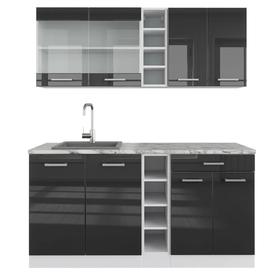 - Die Küchenzeile Single ist beliebig umstellbar und erweiterbar. Mit höhenverstellbaren Füßen passt sie sich perfekt an jeden Raum an.