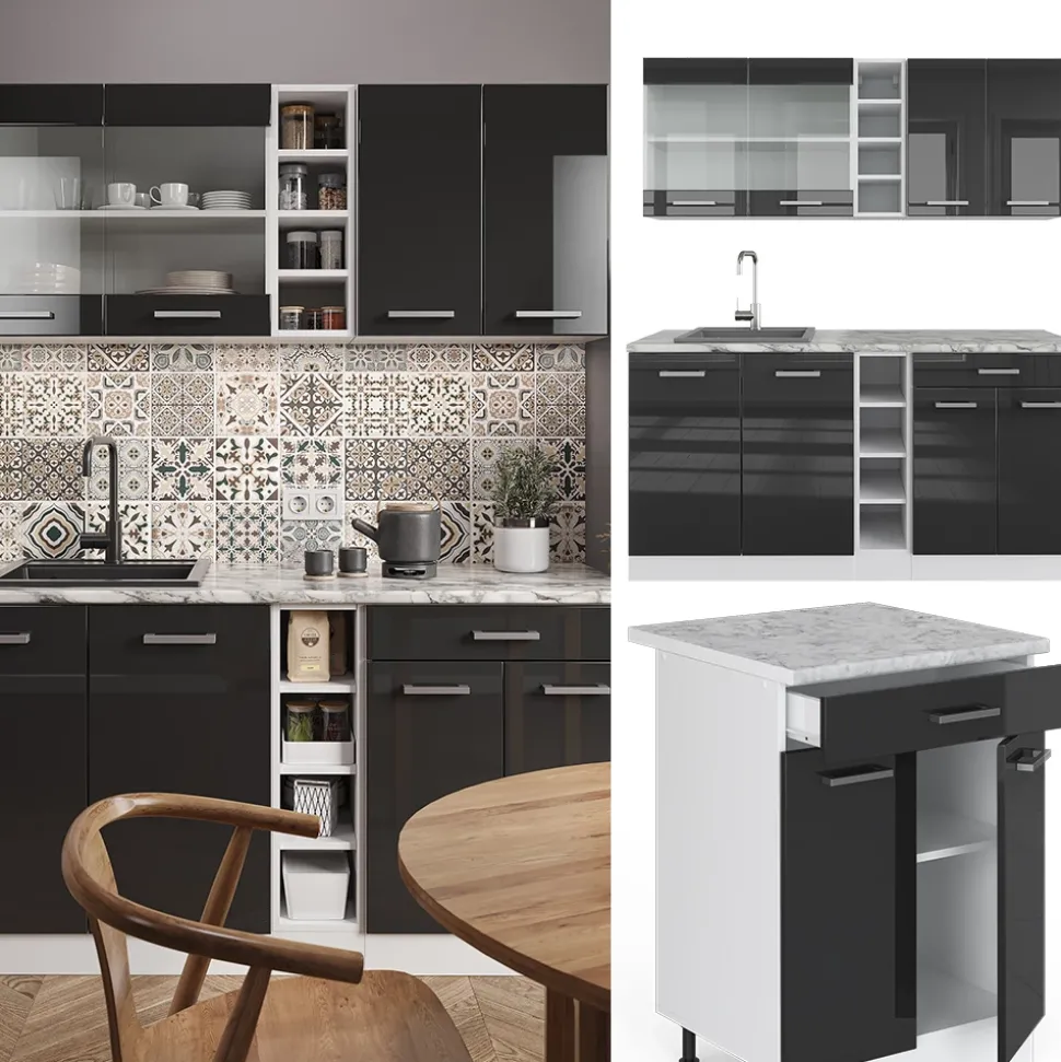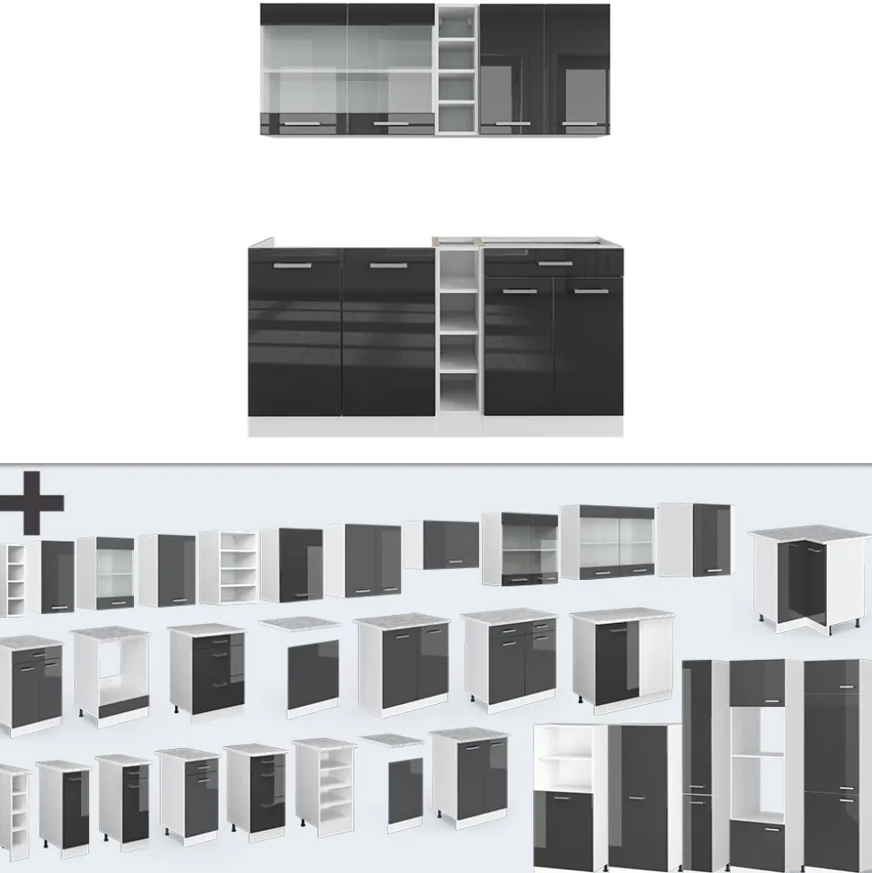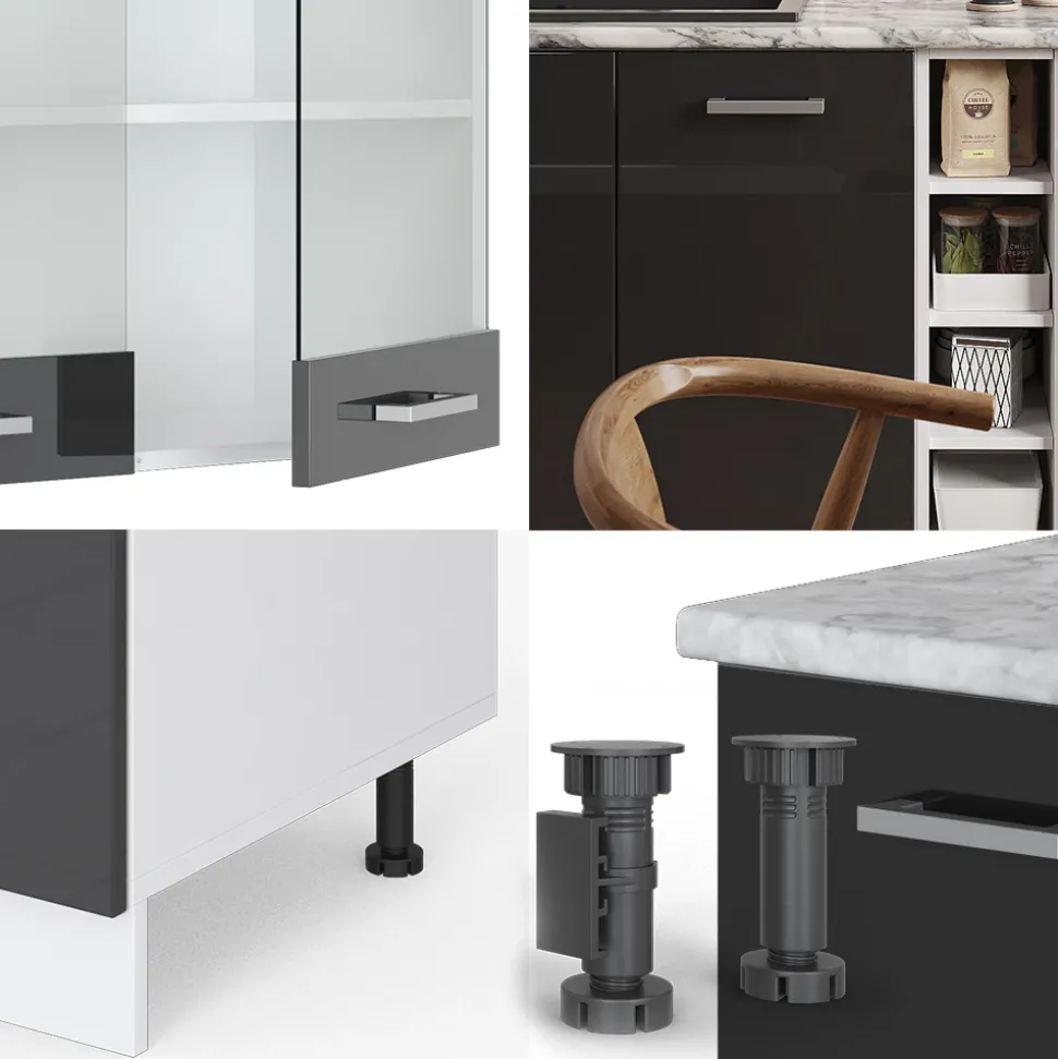 R-Line“ ist eine vielseitige Möbellinie mit Küchenzeilen, montagefertigen Komponenten und Schränken für den, Haushalts-, Wäsche- und Kreativbereich. Sie bietet eine breite Auswahl an Farben und Größen, die individuelle Lösungen für jeden Raum ermöglichen. Die Unterschränke sind mit verstellbaren Füßen ausgestattet, so dass sie einzeln oder als komplettes Set konfiguriert werden können, um den unterschiedlichen Bedürfnissen gerecht zu werden und die Funktionalität in verschiedenen Umgebungen zu verbessern.