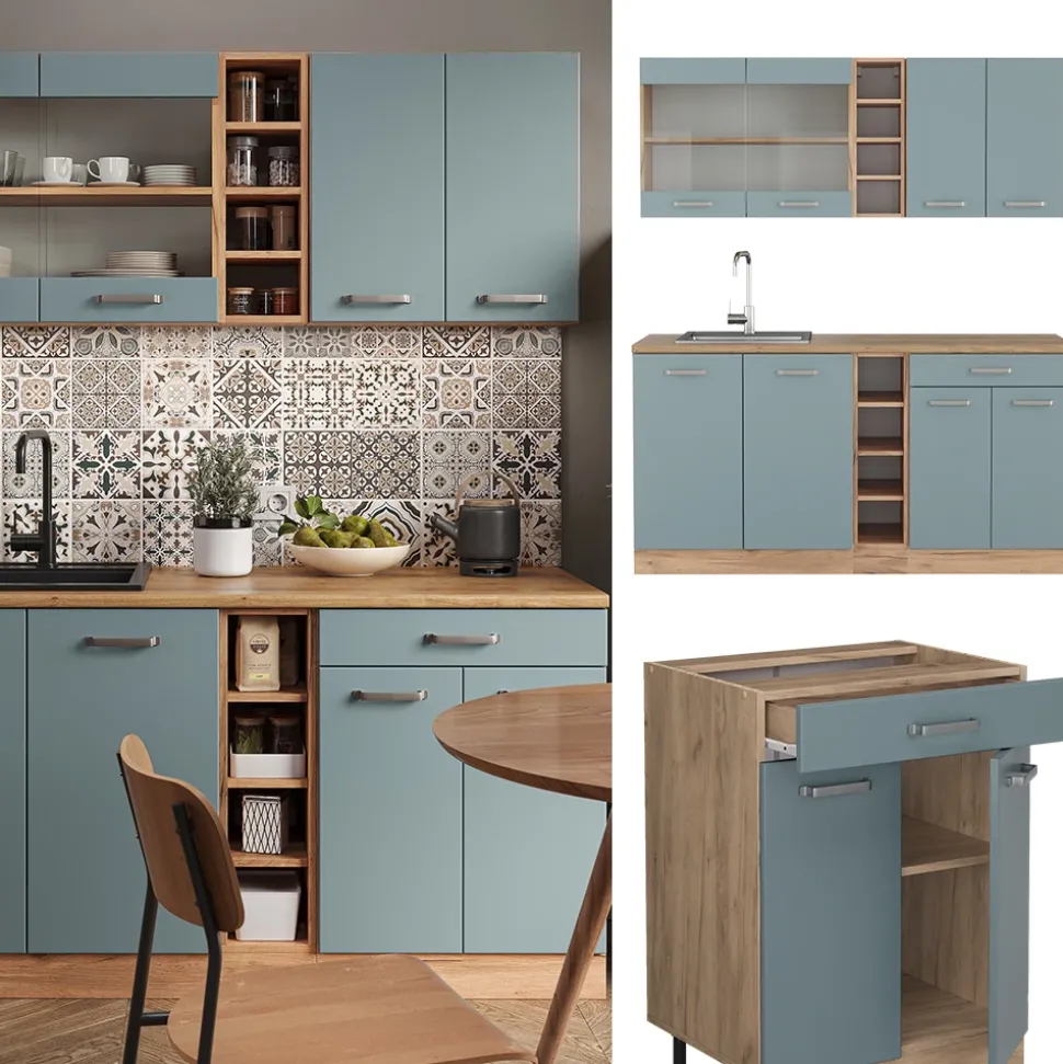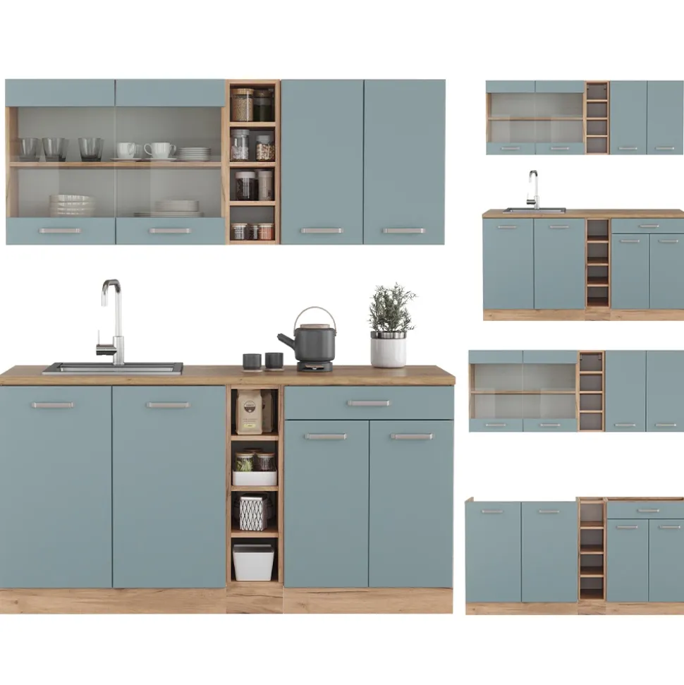 LIEFERUMFANG: Küchenblock ohne Arbeitsplatte, Montagematerial, Montageanleitung (Sofern nicht anders angegeben, gehören Elektrogeräte und Dekorationen nicht zum Lieferumfang).