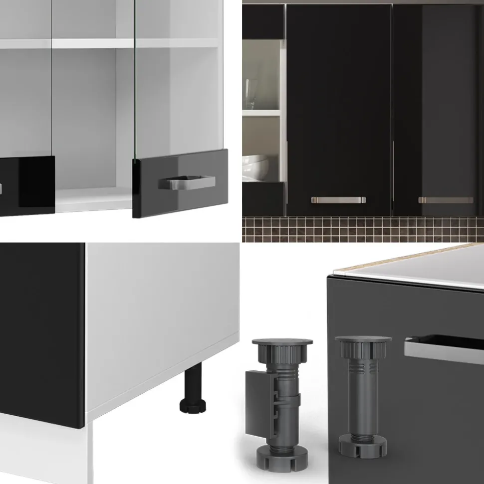 - Die Küchenzeile ist modular aufstellbar und kann je nach Bedarf erweitert werden. Dank höhenverstellbarer Füße ist ein individuelles Anpassen möglich.