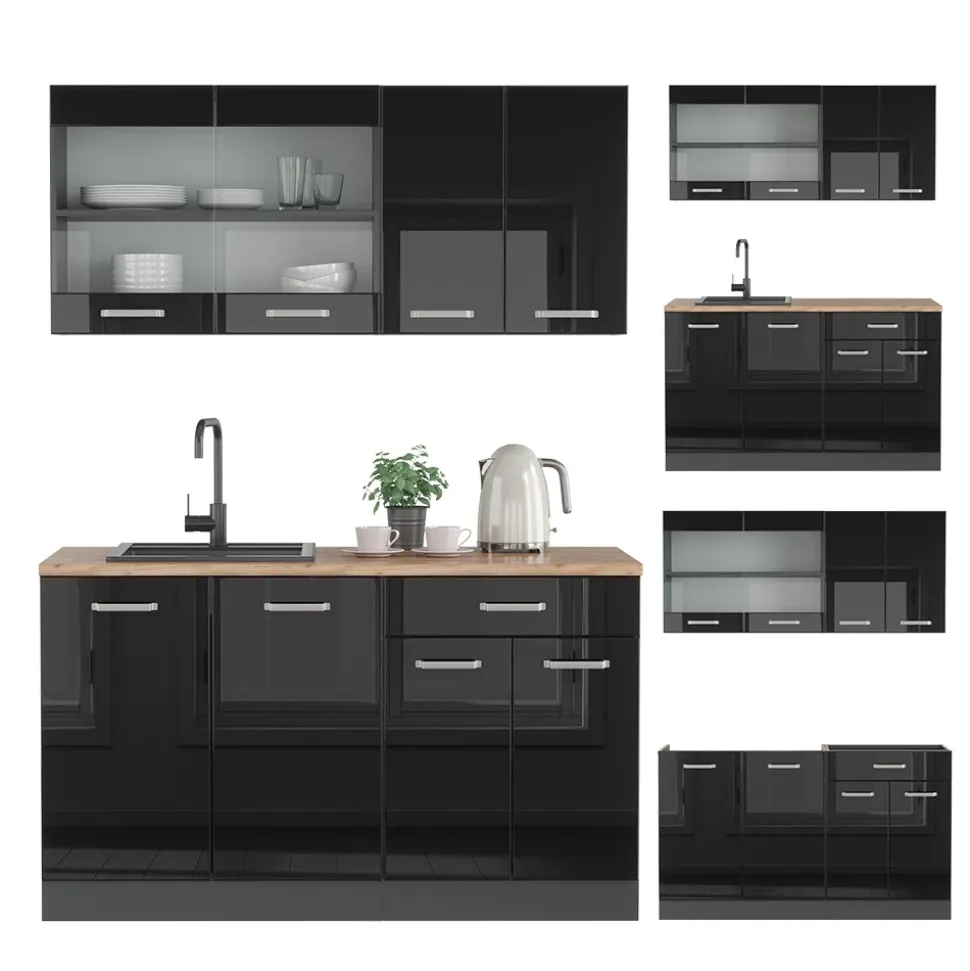 - Die Küchenzeile ist modular aufstellbar und kann je nach Bedarf erweitert werden. Dank höhenverstellbarer Füße ist ein individuelles Anpassen möglich.