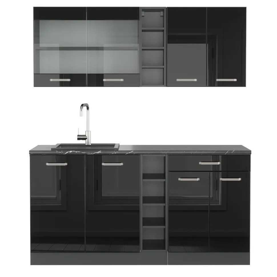 - MAßE: Die Küchenzeile hat eine Breite von 160 cm, eine Höhe von 81,6 cm und eine Tiefe von 46 cm. Alle detaillierten Größen sind auf den Fotos angegeben