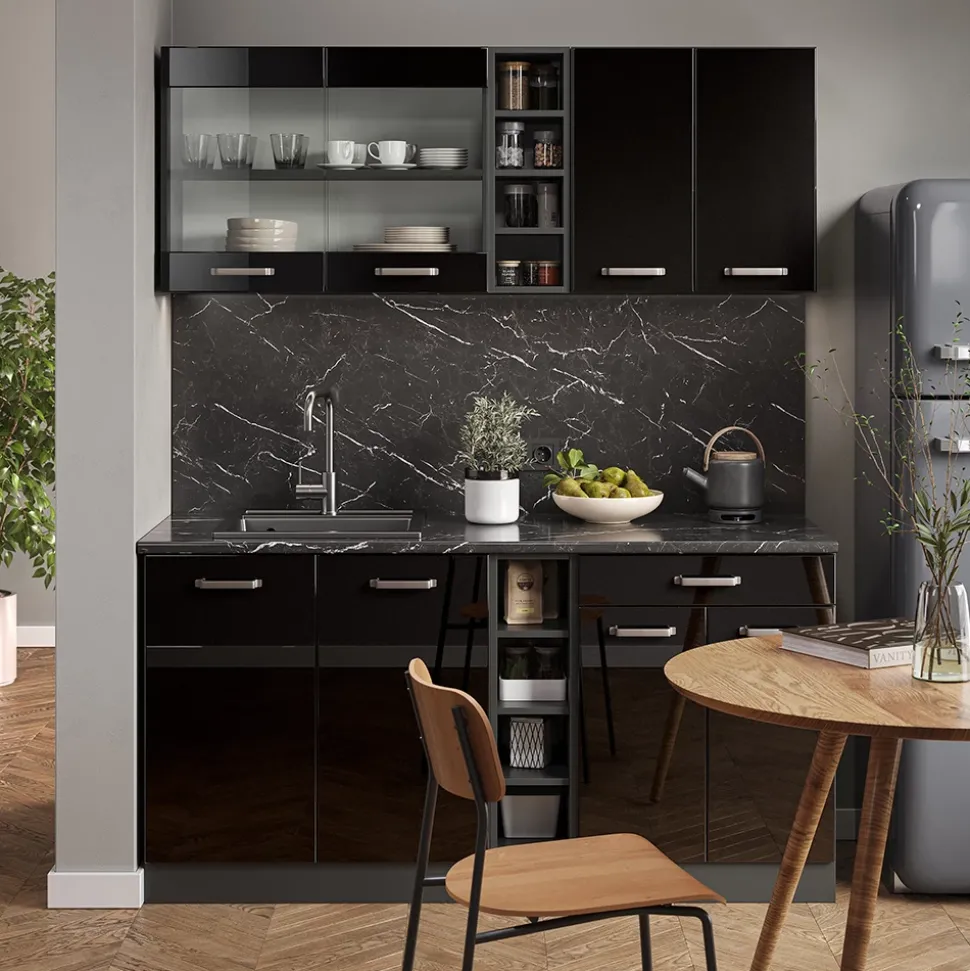 Mit der Singleküche der R-Line – Serie können Sie Ihre Küche auf kleinem Raum perfekt einrichten. Die Küchenzeile bietet ausreichend Stauraum für Geschirr, Töpfe und Lebensmittel und lässt sich dank ihrer modularen Bauweise individuell anpassen. Ob Kochplatte, Kühlschrank oder Spüle – Sie können die Module ganz nach Ihren Bedürfnissen umstellen. Sollte der Platz dennoch einmal nicht ausreichen, können Sie jederzeit zusätzliche Module dazu bestellen. Die höhenverstellbaren Füße sorgen dafür, dass die Küchenzeile auf jede Raumhöhe angepasst werden kann. Mit dieser Komplettlösung wird Ihre Küche zu einem echten Blickfang und Sie können Ihre Kochabenteuer in vollen Zügen genießen. Bestellen Sie jetzt die Singleküche der R-Line – Serie und schaffen Sie sich Ihre persönliche Wohlfühloase!