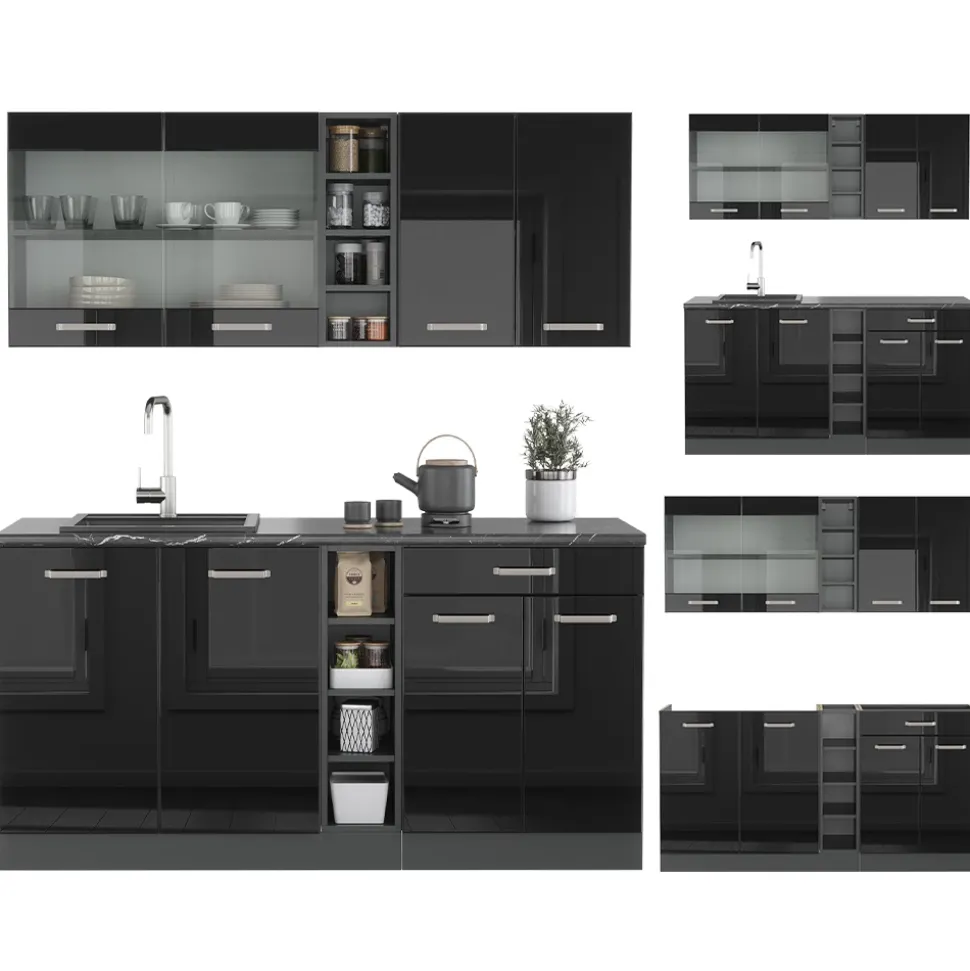 - Die Küchenzeile ist beliebig umstell- und erweiterbar. Mit höhenverstellbaren Füßen passt sie sich perfekt an jeden Raum an.