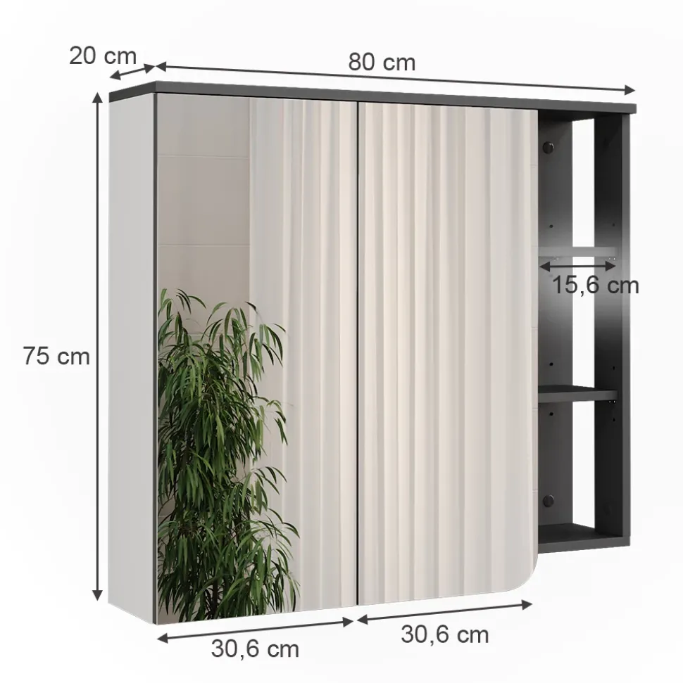 - MAßE: Der Badezimmerschrank mit Spiegel Tiefe: 20 cm, Breite: 80 cm, Höhe: 75 cm