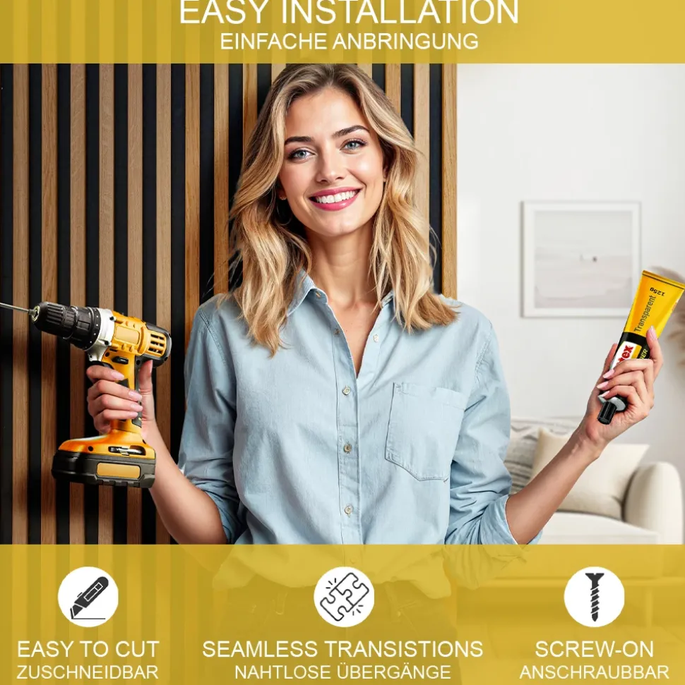 - Maße je Paneel: 120 × 40 × 1,8 cm – ideal für kreative Wandgestaltung mit System. Ob flächig oder akzentuiert montiert, vertikal oder horizontal – passt sich jedem Raumkonzept an.