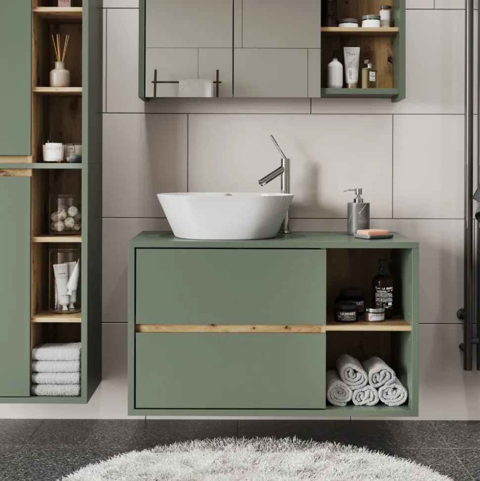 Die Möbelserie „Viola“ bietet eine Auswahl an Badezimmereinrichtungen und Schminktischen in vielen verschiedenen Farbkombinationen. Mit mehreren Optionen für verschiedene Konfigurationen können Sie Ihr Badezimmer und Ankleidezimmer nach Ihrem persönlichen Stil gestalten und einrichten.