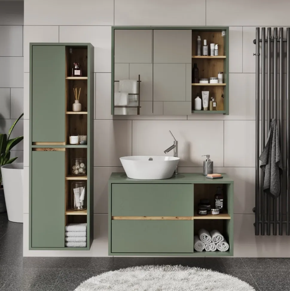 Kompakt, modern, überzeugend – unsere Badmöbelserie Viola wird Sie begeistern. Der Waschtischunterschrank mit vorgefräster Syphon-Aussparung bietet ausreichend Platz, um alle Badutensilien problemlos unterzubringen. Zudem lassen sich dekorative Elemente stilvoll integrieren.Die Badmöbelserie ist in vier unterschiedlichen Farbvarianten erhältlich: edler Artisan mit Anthrazit-Holz-Look, Weiß matt mit Anthrazit-Look, Anthrazit mit Artisan-Look sowie Grau mit Anthrazit-Look. Diese Design-Highlights fügen sich harmonisch in jedes Bad ein und machen es zum Blickfang in Ihrem Zuhause.Dank der im Lieferumfang enthaltenen, bebilderten Montageanleitung ist der Aufbau kinderleicht!