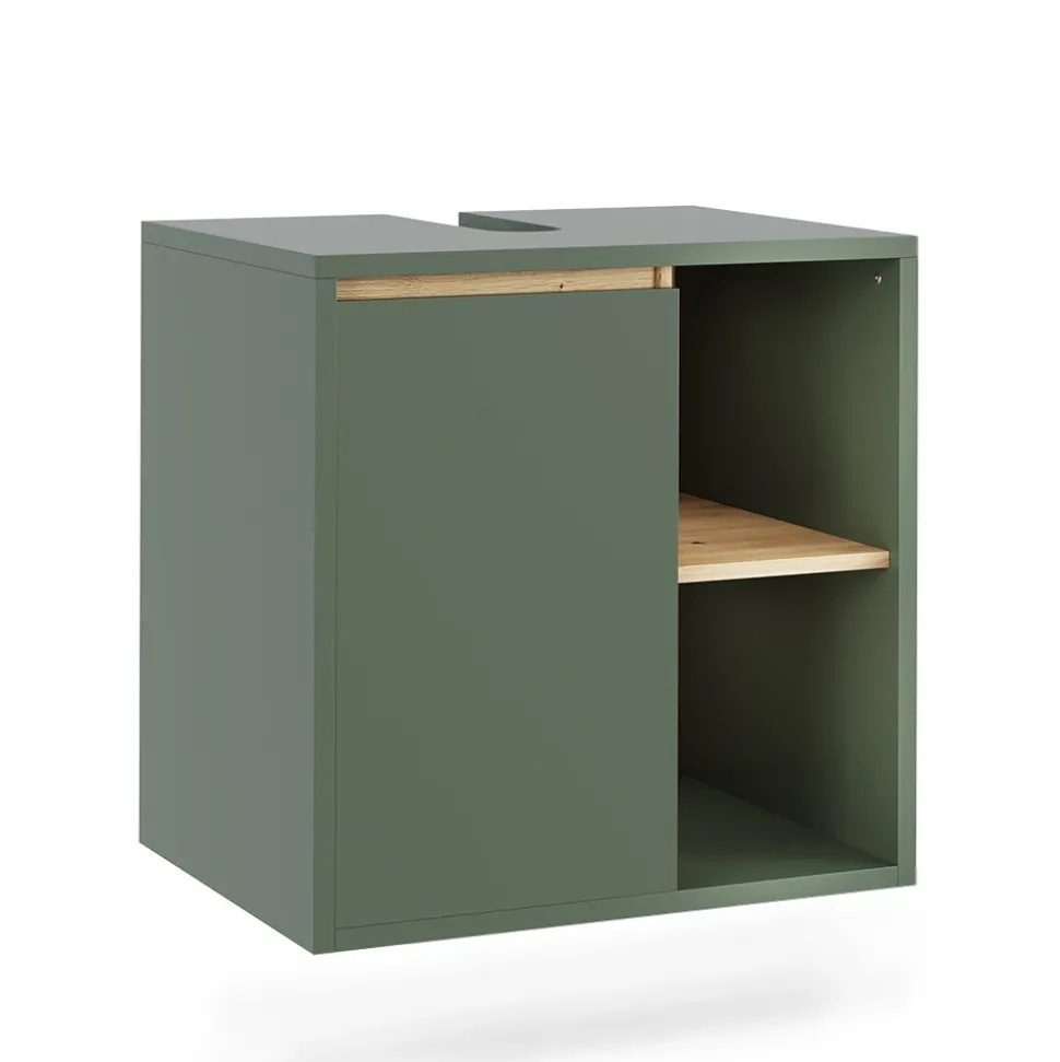 Der Waschbeckenunterschrank Viola vereint modernes Design mit praktischer Funktion. Eine Tür sowie zwei offene und zwei geschlossene Fächer bieten ausreichend Stauraum für Badutensilien. Ideal für kleine Badezimmer – für mehr Ordnung, Stil und eine elegante Note.