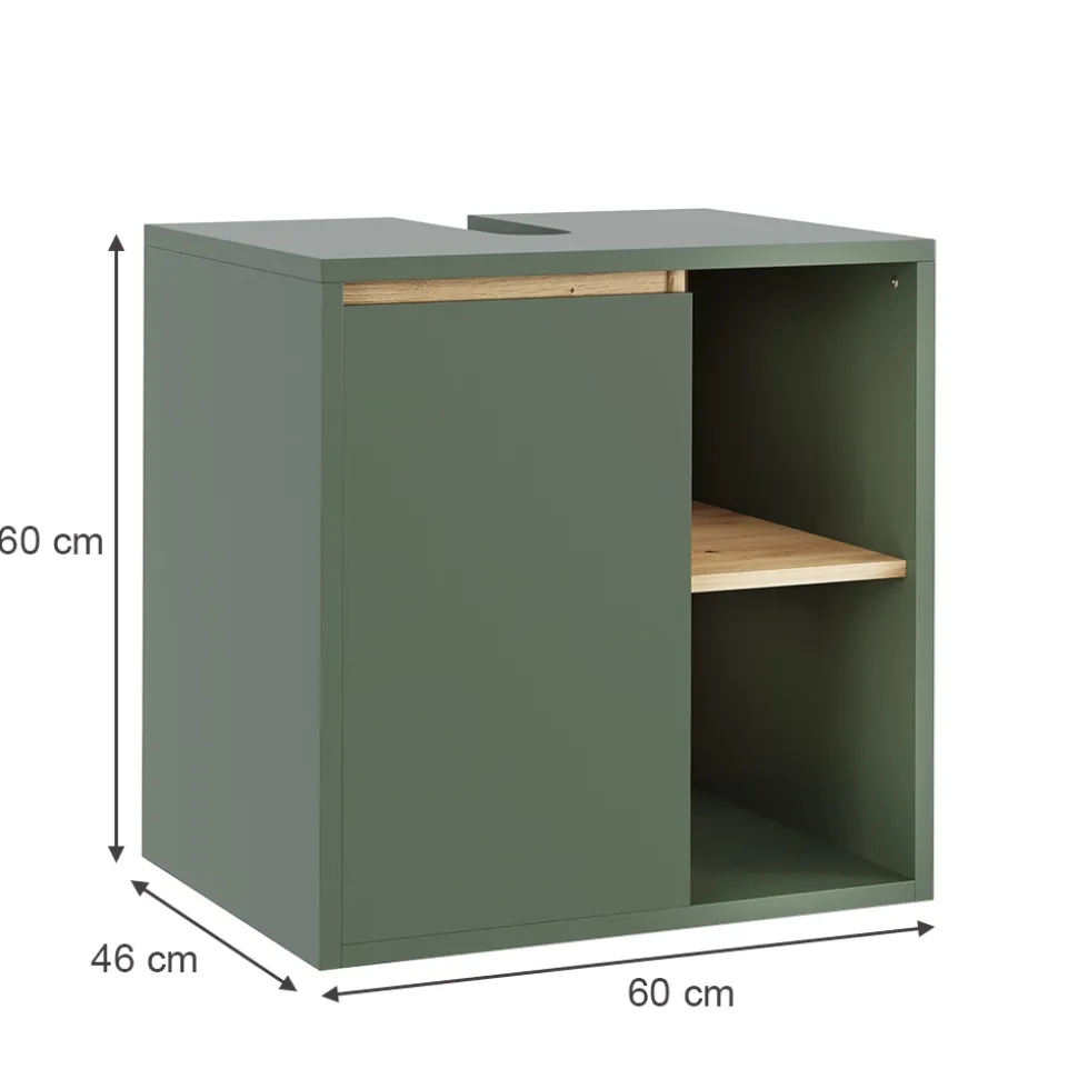 - MAßE: Der Unterschrank fürs Badezimmer misst 60 cm in der Breite, 60 cm in der Höhe und 46 cm in der Tiefe.