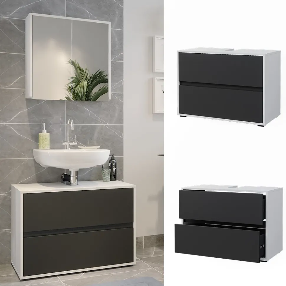- Der Waschtischunterschrank mit Schubladen bietet reichlich Stauraum und verfügt über zwei große Schubladen sowie eine Aussparung für einen Siphon.