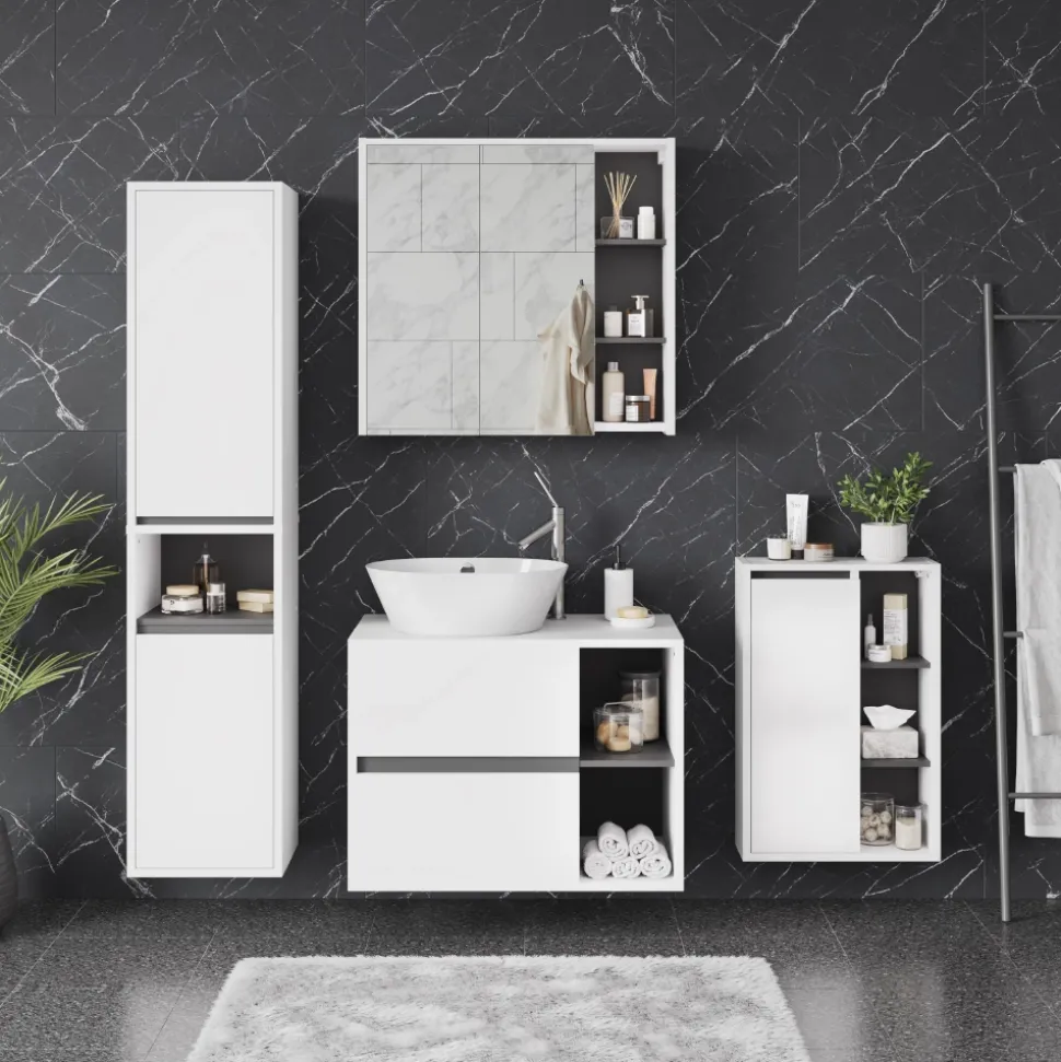 Die Möbelserie „Viola“ bietet eine Auswahl an Badezimmereinrichtungen und Schminktischen in vielen verschiedenen Farbkombinationen. Mit mehreren Optionen für verschiedene Konfigurationen können Sie Ihr Badezimmer und Ankleidezimmer nach Ihrem persönlichen Stil gestalten und einrichten.