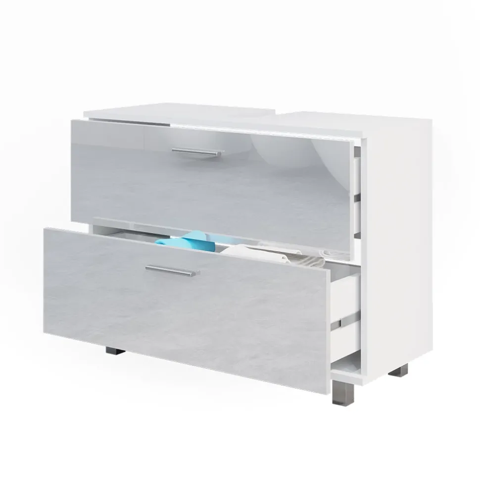 - Der Waschtischunterschrank mit Schubladen bietet viel Stauraum mit zwei großen Schubladen und einer Aussparung für den Siphon.