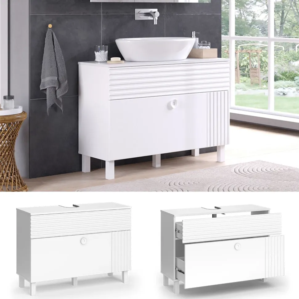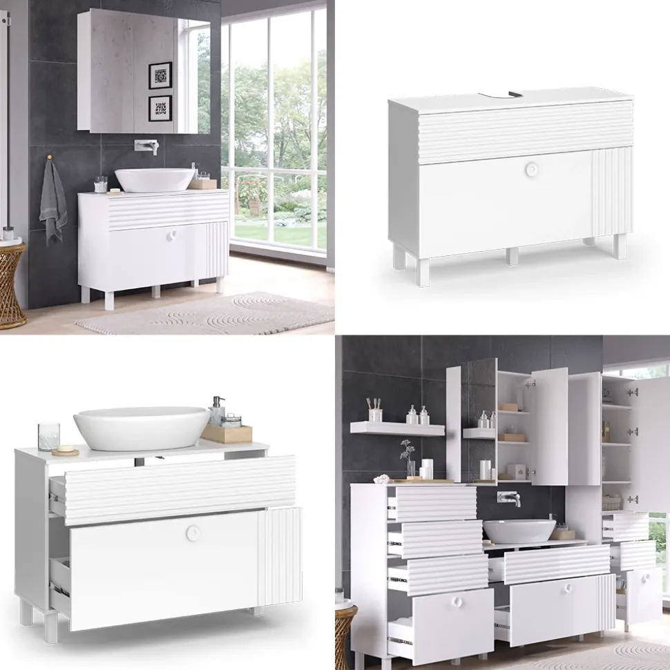 - Genießen Sie die klaren Vorteile eines Badunterschranks. Dieser Waschbeckenschrank optimiert die Badgestaltung, schafft Stauraum und trägt zur effizienten Organisation Ihres Badezimmers bei.