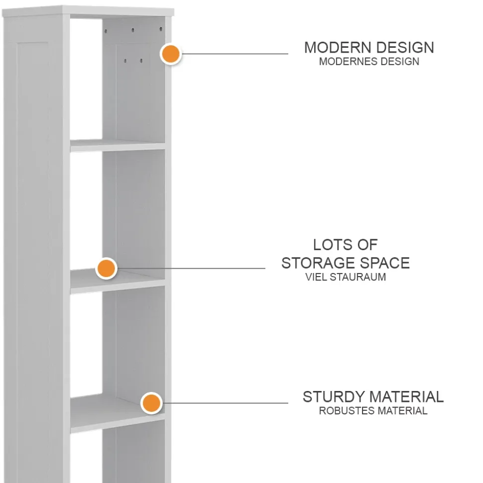 - MAßE: Das Bücherregal für Kinder hat eine Tiefe von 30,6 cm, eine Breite von 35,2 cm und eine Höhe von 159,5 cm.