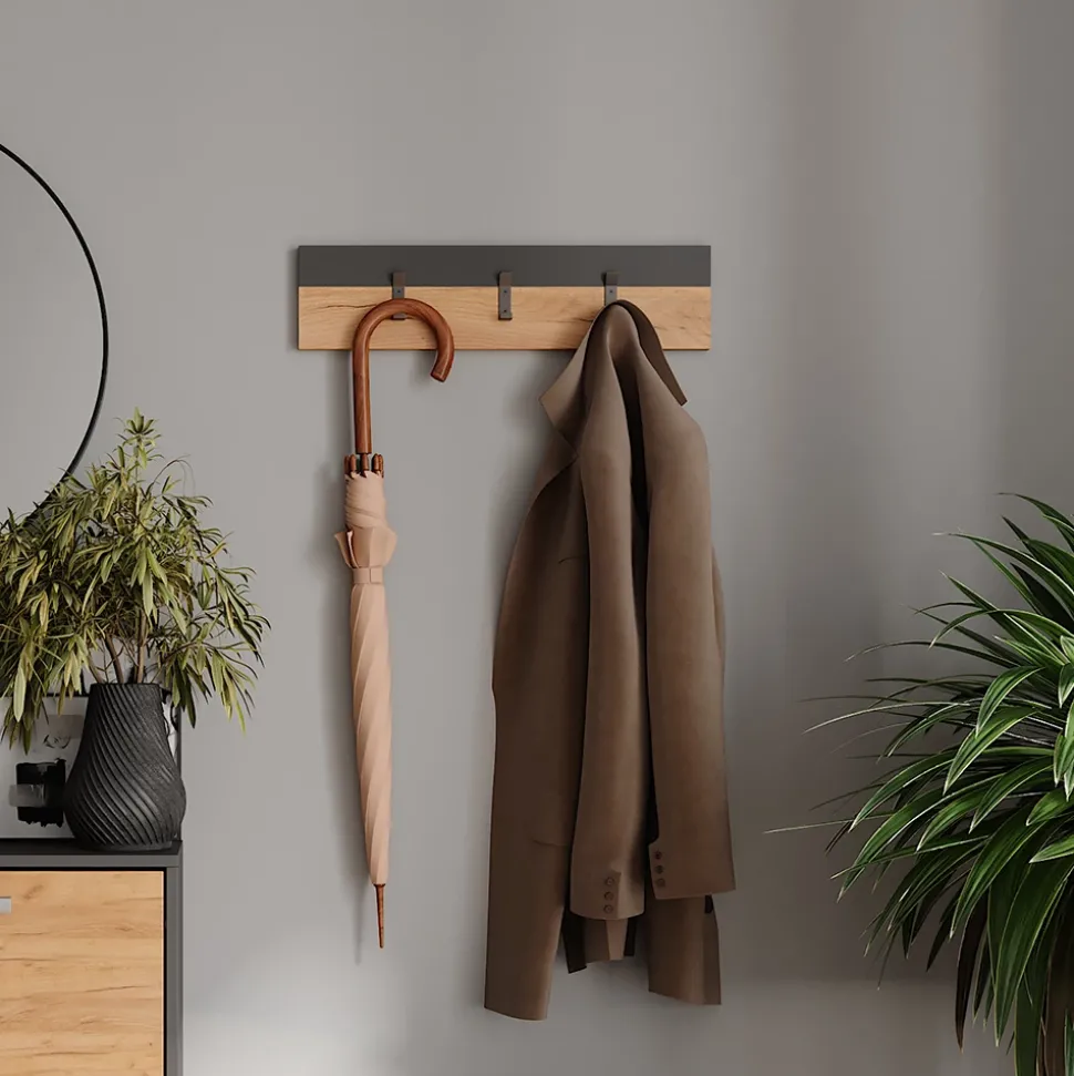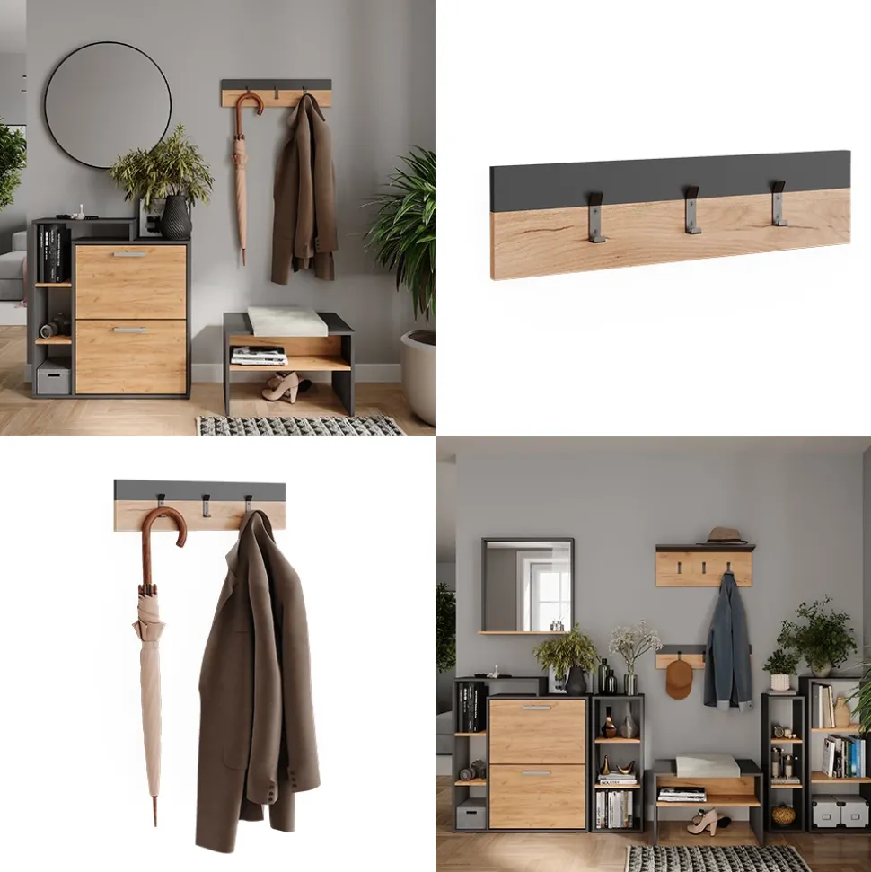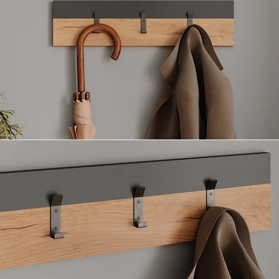 Die Wandgarderobe Orlando ist nicht nur ein praktisches Möbelstück für Ihren Flur, sondern auch ein echter Hingucker. Mit ihrem modernen Charme und hochwertigem Design fügt sie sich perfekt in jede Einrichtung ein. Die robusten Materialien sorgen dafür, dass Sie lange Freude an dieser Garderobe haben werden. Die Hutablage und die drei Haken aus Metall bieten genügend Platz für Jacken, Mäntel und Accessoires. So haben Sie immer alles griffbereit, wenn Sie das Haus verlassen. Mit der Wandgarderobe Orlando wird Ihr Flur zu einem stilvollen und geordneten Eingangsbereich. Gönnen Sie sich dieses praktische und ästhetische Möbelstück für Ihr Zuhause.