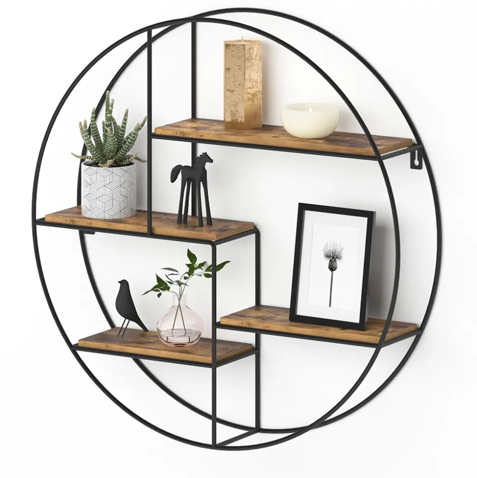 - Das hängende Regal hat vier offene Ablagen und ist ideal für das Wohnzimmer geeignet. Es wird mit Wandhalterungen geliefert.