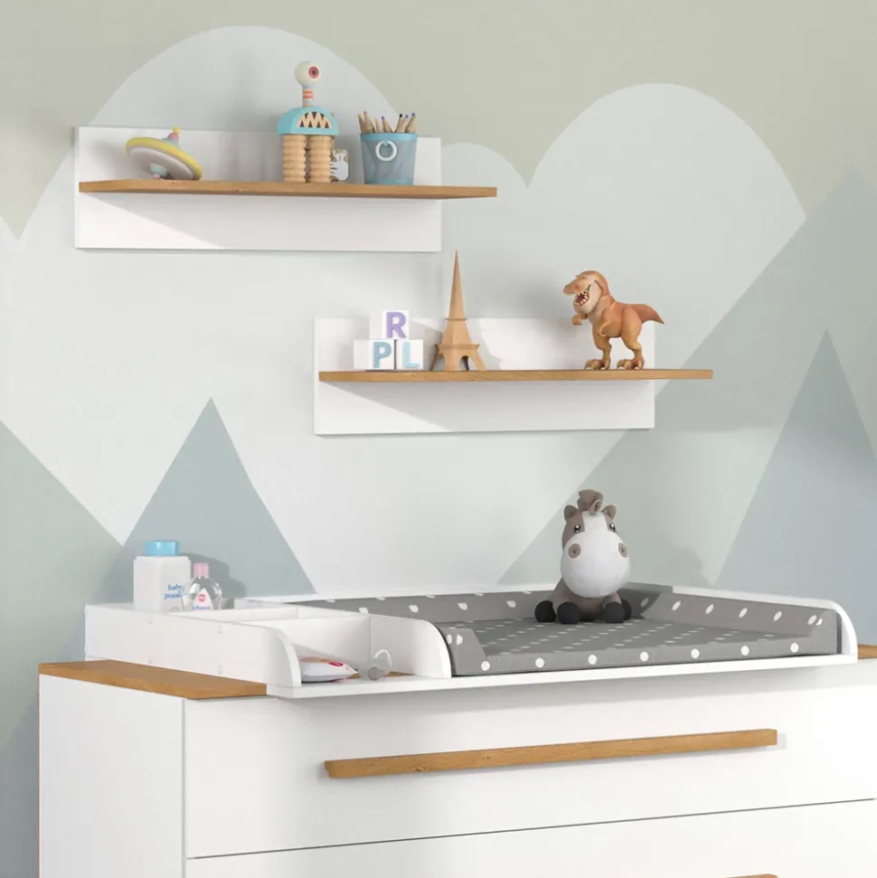 Das Wandregal für Kinderzimmer Malia ist ein Must-Have für jedes kindgerechte Zuhause. Es bietet nicht nur Platz für Lieblingsspielzeuge und Bücher, sondern ist auch ein ideales Hängeregal für Accessoires und Dekorationen. Das offene Regal ist durch seine Wandhalterung stabil und sicher angebracht. Kombinieren Sie das Kinderregal mit anderen Produkten aus der Malia-Kollektion, um ein harmonisches Raumkonzept für Ihr Kind zu schaffen. Die Möbelserie Malia wurde speziell für Kinderzimmer entwickelt und besticht durch ihre kindgerechte Gestaltung und Funktionalität. Geben Sie Ihrem Kind die Möglichkeit, seine eigene kleine Welt zu gestalten und schenken Sie ihm dieses wunderbare Wandregal Kinderzimmer Malia.