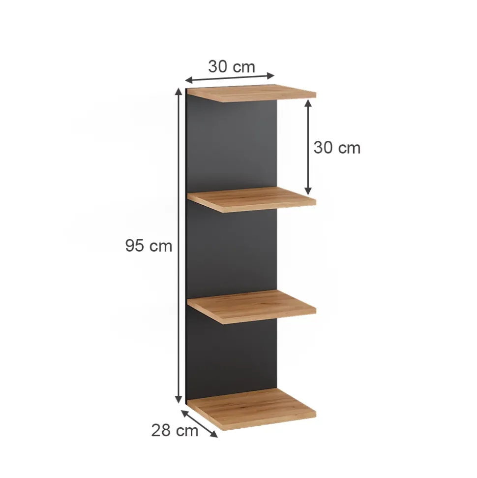 - MAßE: Das Bücherregal hat eine Tiefe von 28 cm, eine Breite von 30 cm und eine Höhe von 95 cm.