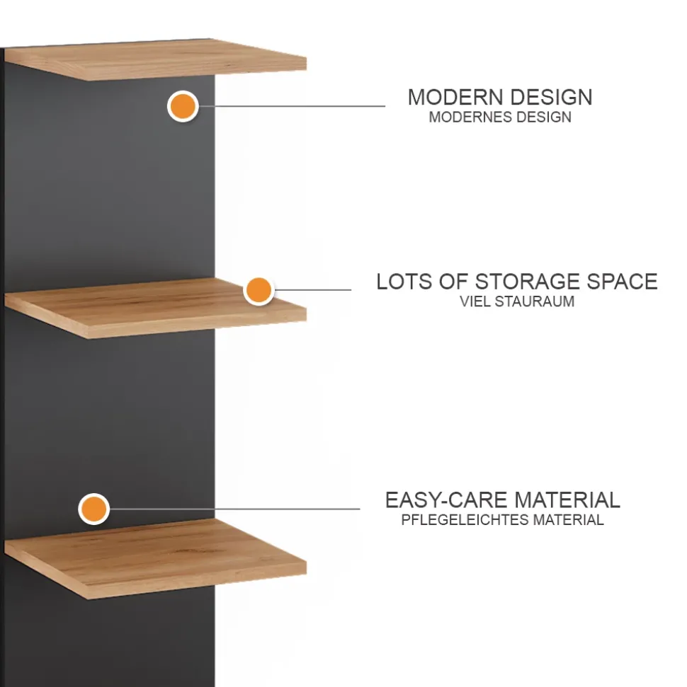 - MATERIAL: Das Wandregal besteht aus pflegeleichter Spanplatte, 16 mm.