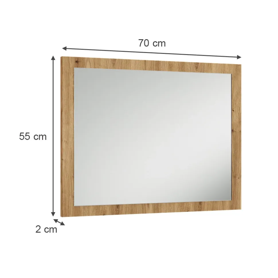 - MAßE: Der Flurspiegel hat eine Größe von 70 cm in der Breite, 55 cm in der Höhe bei einer Tiefe von 2 cm.