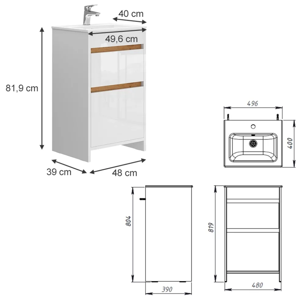 - MATERIAL: Das Badmöbel-Set besteht aus pflegeleichter, melaminharzbeschichteter 16 mm Spanplatte. Das Waschbecken ist aus Keramik gefertigt