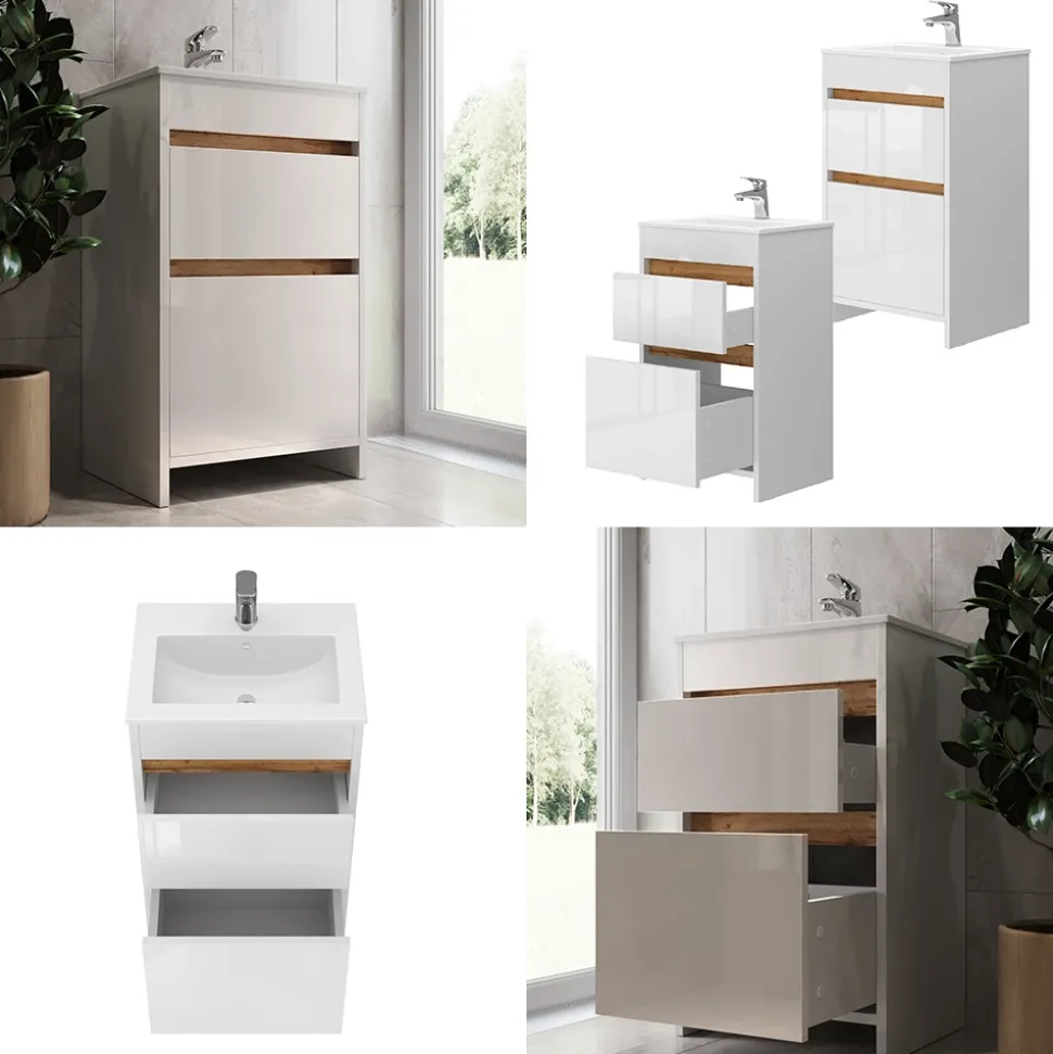 - Ein gut durchdachtes Set mit Waschbeckenunterschrank, das für jede Wohnung geeignet ist.