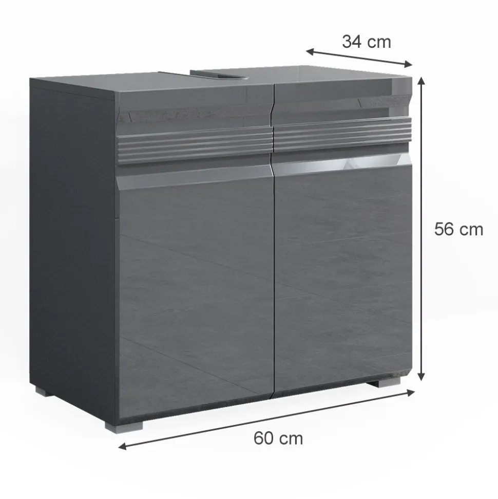 - MAßE: Der Unterschrank für das Badezimmer hat eine Breite von 60 cm, eine Höhe von 56 cm und eine Tiefe von 34 cm. Alle detaillierten Größen sind auf den Fotos angegeben.