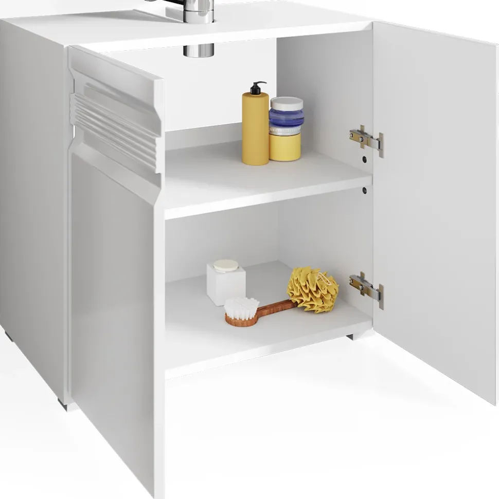 Der Waschbeckenunterschrank Fredd ist das perfekte Badezimmer-Accessoire für alle, die ein originelles Design suchen. Er ist mit zwei Flügeltüren und einer Aussparung für einen Siphon ausgestattet und kompatibel mit anderen Artikeln der Kollektion Fredd. Durch seine grifflose Front wirkt er besonders modern und stilvoll. So wird das Badezimmer zum Blickfang in jedem Zuhause.