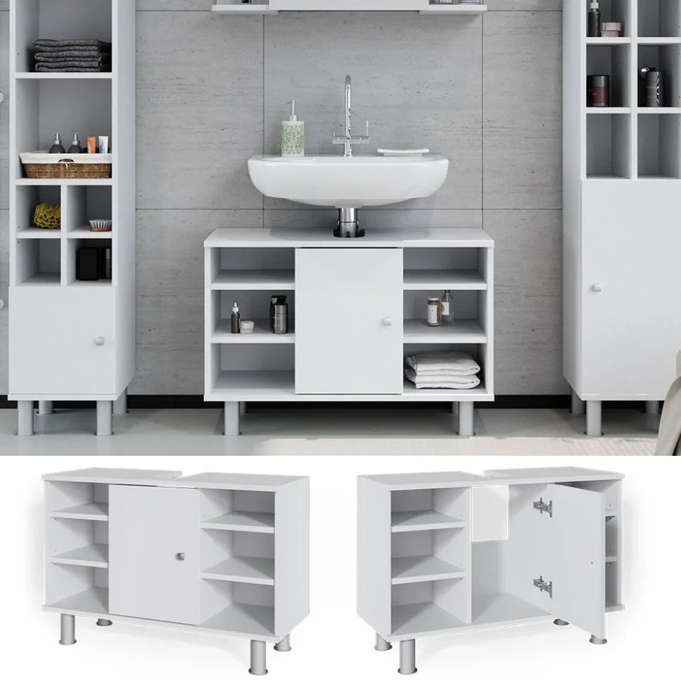 Der Waschbeckenunterschrank Fynn ist die perfekte Ergänzung für Ihr Badezimmer. Mit seinem minimalistischen Design und der praktischen Aufteilung bietet er nicht nur Stauraum, sondern verleiht Ihrem Bad auch eine moderne Note. Die Flügeltür und die 6 offenen Einlegeböden ermöglichen es Ihnen, Ihre Badutensilien ordentlich zu verstauen und immer griffbereit zu haben. Die Aussparung für den Siphon sorgt dafür, dass der Unterschrank perfekt an Ihr Waschbecken passt. Kombinierbar mit anderen Produkten der Fynn-Kollektion, ist dieser Badunterschrank ein Must-Have für jeden, der sein Badezimmer stilvoll und funktional gestalten möchte. Gönnen Sie sich mit dem Waschbeckenunterschrank Fynn ein Upgrade für Ihr Bad!