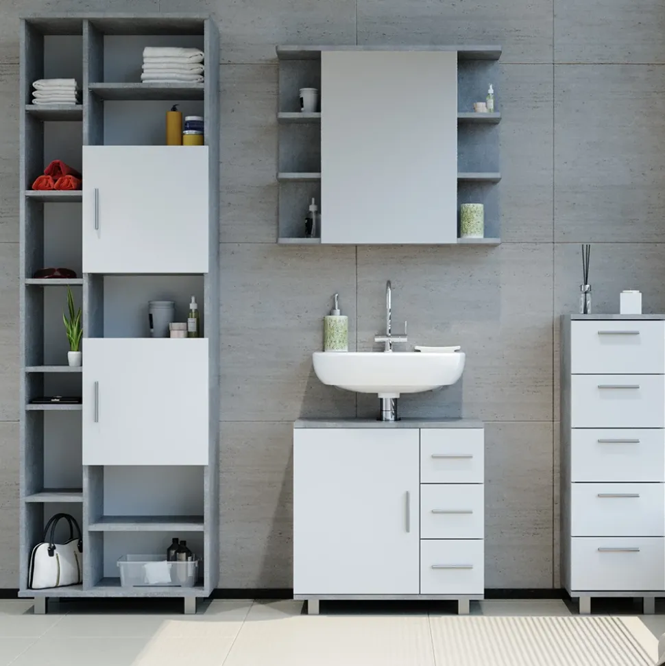 - MATERIAL: Der Badunterschrank besteht aus pflegeleichter Spanplatte 16 mm, mit einer Melaminharzbeschichtung