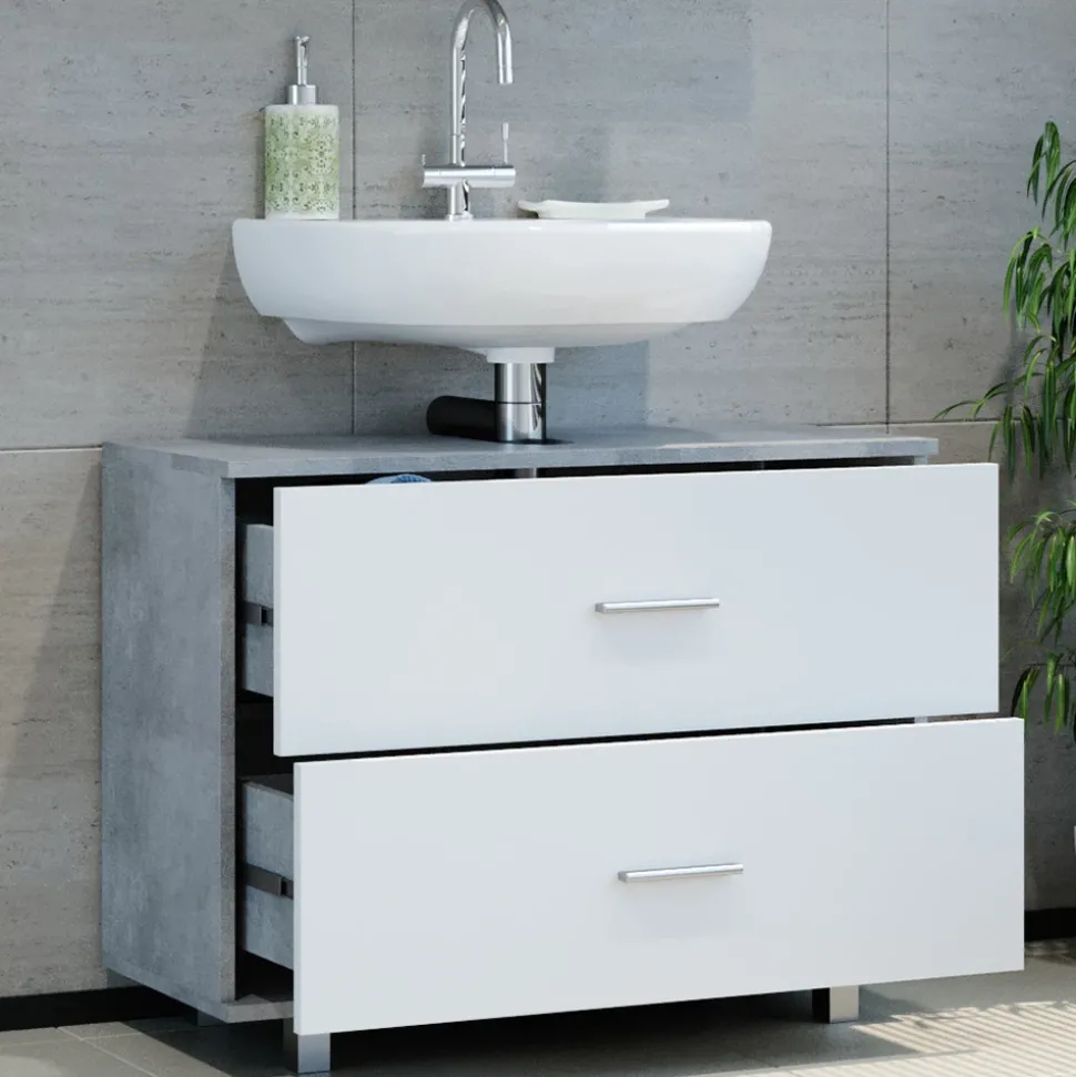 Der Ilias Waschbeckenunterschrank ist ein praktischer und funktioneller Badezimmerschrank. Er hat zwei große Schubladen, in denen Sie alles verstauen können, was Sie fürs Baden und Duschen benötigen. Der Unterschrank hat eine Aussparung für einen Siphon, so dass Sie das Wasser problemlos ablassen können. Dieser Waschbeckenunterschrank ist aus hochwertigen Materialien gefertigt und sehr langlebig. Er ist auch kompatibel mit anderen Artikeln der Ilias-Kollektion.