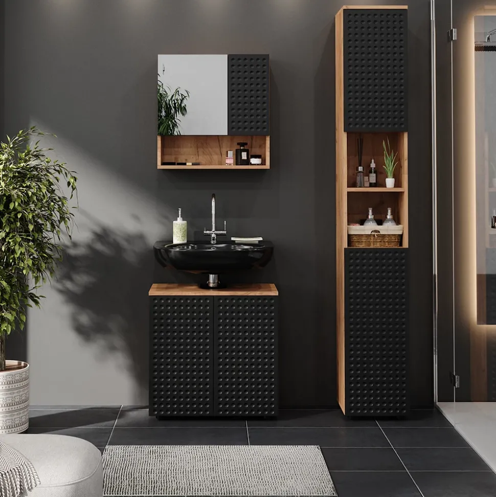 Der Waschbeckenunterschrank Irma ist die perfekte Ergänzung für jedes Badezimmer! Mit seinen zwei eleganten Drehtüren und seinem dezenten Aussehen bietet er den perfekten Platz, um all Ihre Badezimmerutensilien zu verstauen. Der Schrank verfügt über eine Aussparung für einen Siphon. Da er mit anderen Produkten der Irma-Kollektion kompatibel ist, können Sie Ihr Badezimmer perfekt aufeinander abstimmen. Ob Sie nun von der Funktionalität oder dem modernen Design beeindruckt sind – Irma wird in jedem Badezimmer ein Blickfang sein!