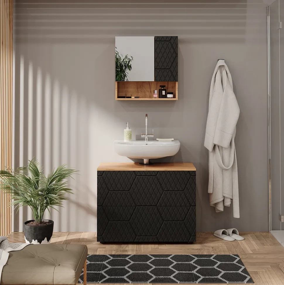 - Der Badunterschrank Irma ist die perfekte Wahl für Ihr Badezimmer. Sein stilvolles Aussehen passt in jedes Badezimmer und bietet viel Stauraum.
