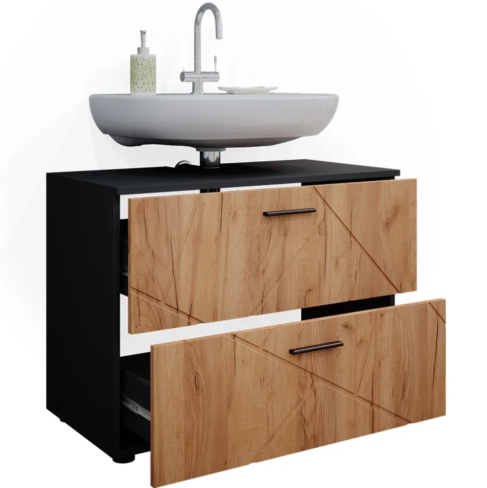 - Der Waschtischunterschrank mit Schubladen bietet mit seinen zwei großen Schubladen und viel Stauraum eine praktische Lösung für das Badezimmer.