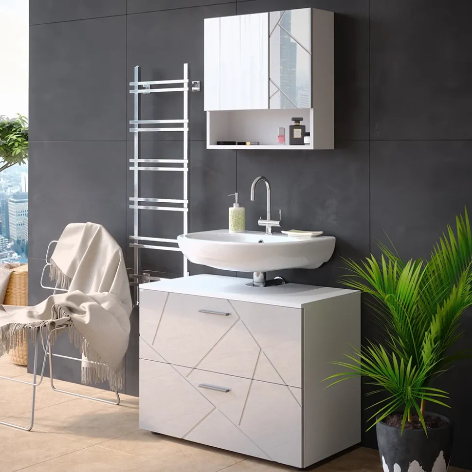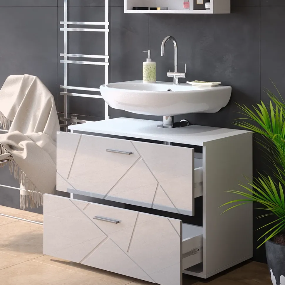 Der Waschbeckenunterschrank Irma ist ein innovatives und stilvolles Badmöbel, das perfekt zu Ihrem Waschbecken passt. Dank der zwei großen Schubladen bietet der Unterschrank genügend Stauraum für alle Ihre Badutensilien. Außerdem ist er mit einer Aussparung für einen Siphon ausgestattet, so dass Sie ihn ganz einfach an Ihr Waschbecken anschließen können. Darüber hinaus ist der Waschbeckenunterschrank Irma kompatibel mit anderen Produkten der Irma-Kollektion, so dass Sie Ihr Badezimmer ganz einfach nach Ihren Wünschen gestalten können.