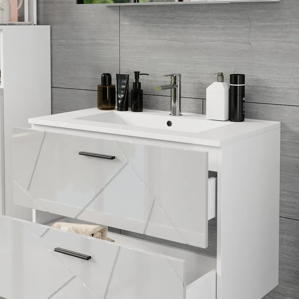 - Das Badezimmerschrank-Set bietet praktische Aufbewahrungslösungen für Ihr Badezimmer. Mit seinen vielseitigen Funktionen und stilvollen Designs ist es die perfekte Ergänzung für jedes Badezimmer.