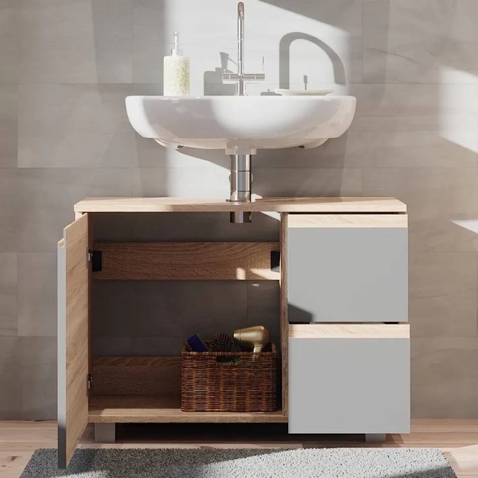 Der Waschbeckenunterschrank aus der Kollektion J-shape ist die perfekte Ergänzung für jedes Badezimmer. Das innovative Design vereint Funktionalität und Ästhetik auf beeindruckende Weise. Der Unterschrank bietet reichlich Stauraum für all Ihre Badutensilien. Eine Flügeltür und 2 Schubladen sorgen für leicht zugänglichen Stauraum und ordentliche Aufbewahrung. Besonders praktisch ist die Aussparung für den Siphon, die den Unterschrank perfekt an das Waschbecken anpasst und kein Platz verschwendet wird. Der Waschtischunterschrank ist kompatibel mit anderen Produkten der J-shape Kollektion und lässt sich somit wunderbar kombinieren. Bringen Sie Ihr Badezimmer auf das nächste Level und entscheiden Sie sich für den Badunterschrank von J-shape.