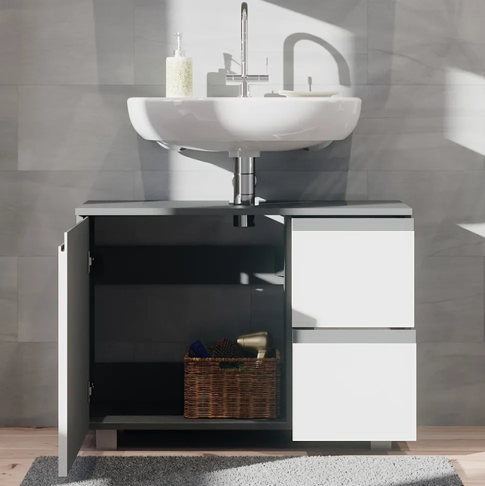 Der Waschbeckenunterschrank aus der Kollektion J-shape ist die perfekte Ergänzung für jedes Badezimmer. Das innovative Design vereint Funktionalität und Ästhetik auf beeindruckende Weise. Der Unterschrank bietet reichlich Stauraum für all Ihre Badutensilien. Eine Flügeltür und 2 Schubladen sorgen für leicht zugänglichen Stauraum und ordentliche Aufbewahrung. Besonders praktisch ist die Aussparung für den Siphon, die den Unterschrank perfekt an das Waschbecken anpasst und kein Platz verschwendet wird. Der Waschtischunterschrank ist kompatibel mit anderen Produkten der J-shape Kollektion und lässt sich somit wunderbar kombinieren. Bringen Sie Ihr Badezimmer auf das nächste Level und entscheiden Sie sich für den Badunterschrank von J-shape.